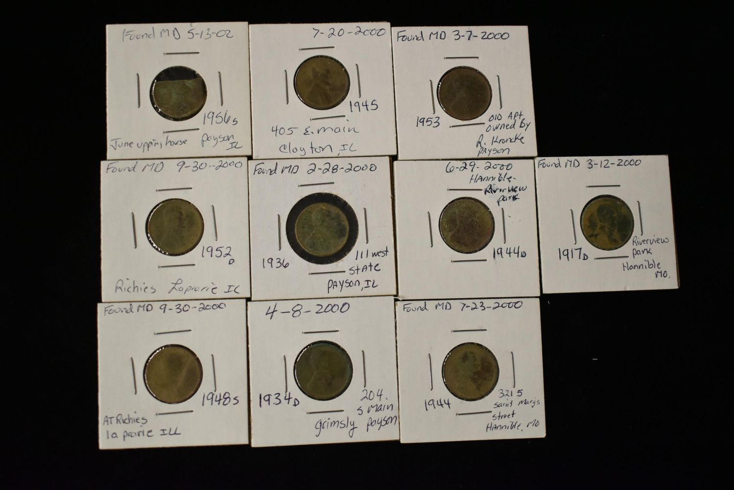 Lot of 10 Metal Detected Wheat Pennies