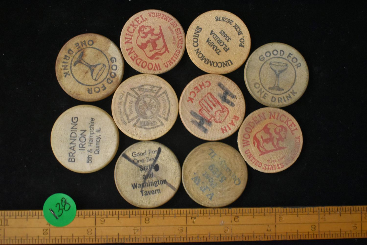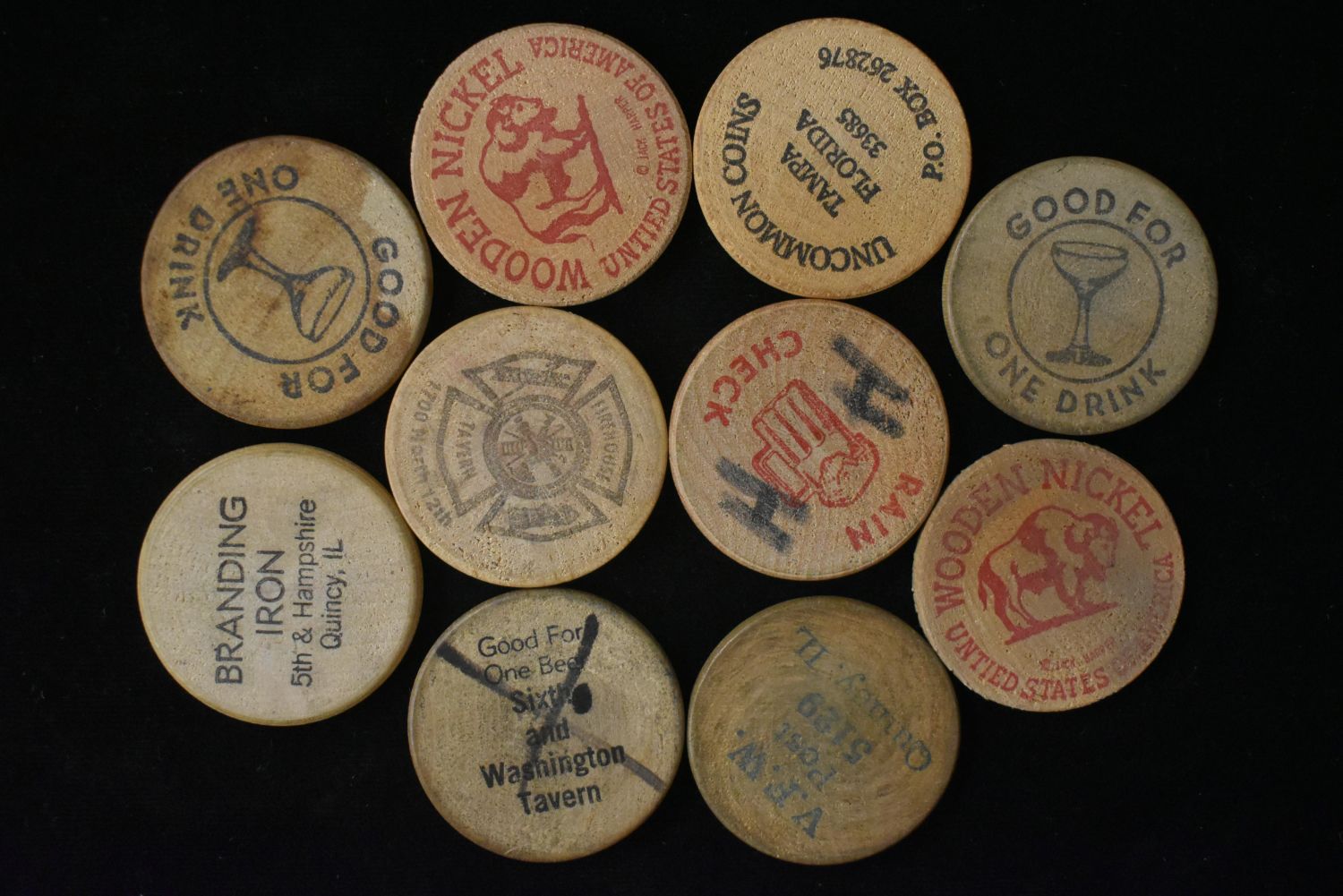 Lot of 10 Wooden Tokens Condition: 100% Guaranteed Authentic via our Return Policy & Found on Private Property