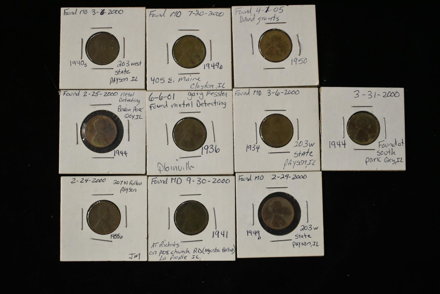 Lot of 10 Metal Detected Wheat and Lincoln Pennies found near Quincy Illinois Condition: 100% Guaranteed Authentic via our Return Policy & Found on Private Property