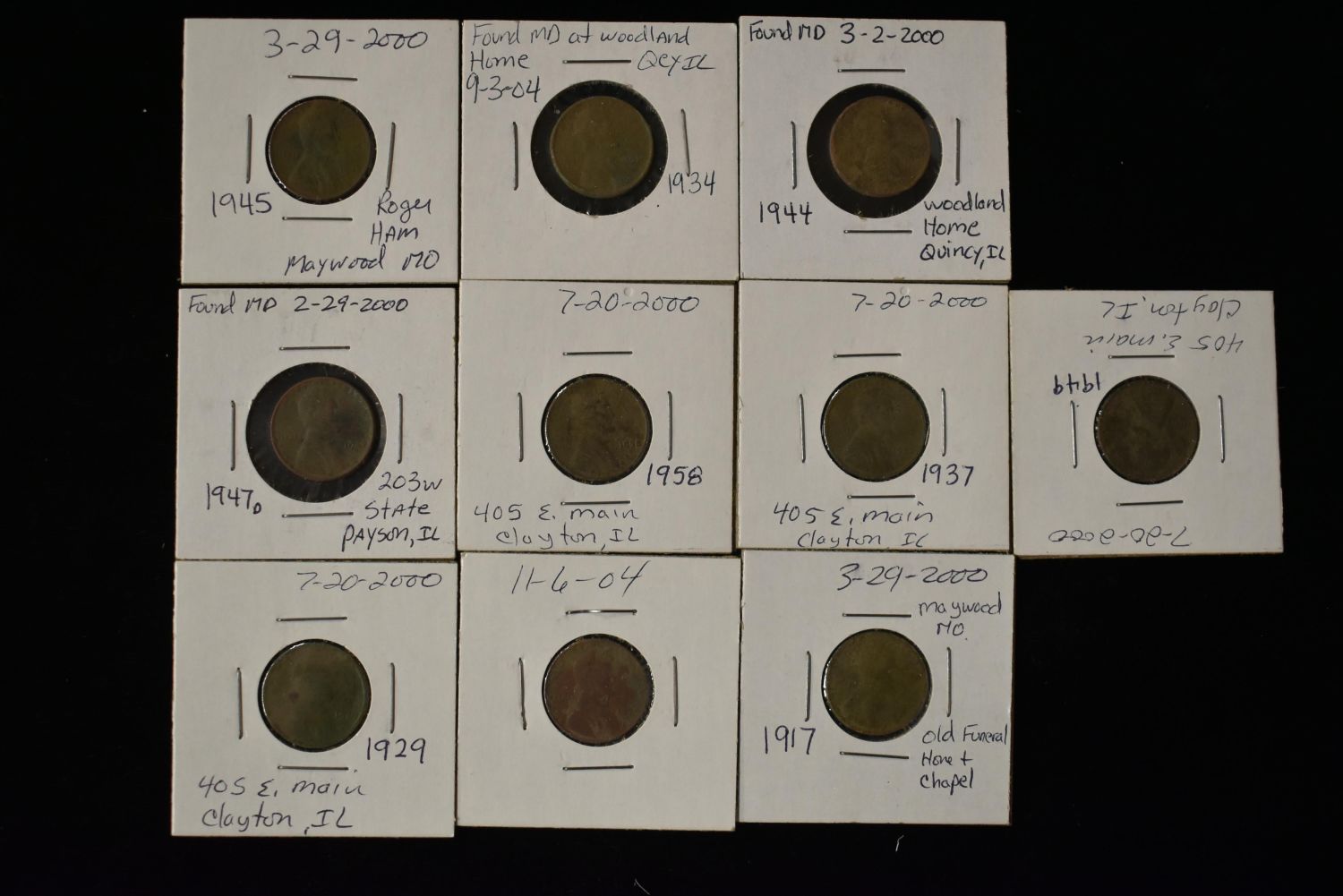 Lot of 10 Metal Detected Wheat Head Pennies found near Quincy Illinois Condition: 100% Guaranteed Authentic via our Return Policy & Found on Private Property
