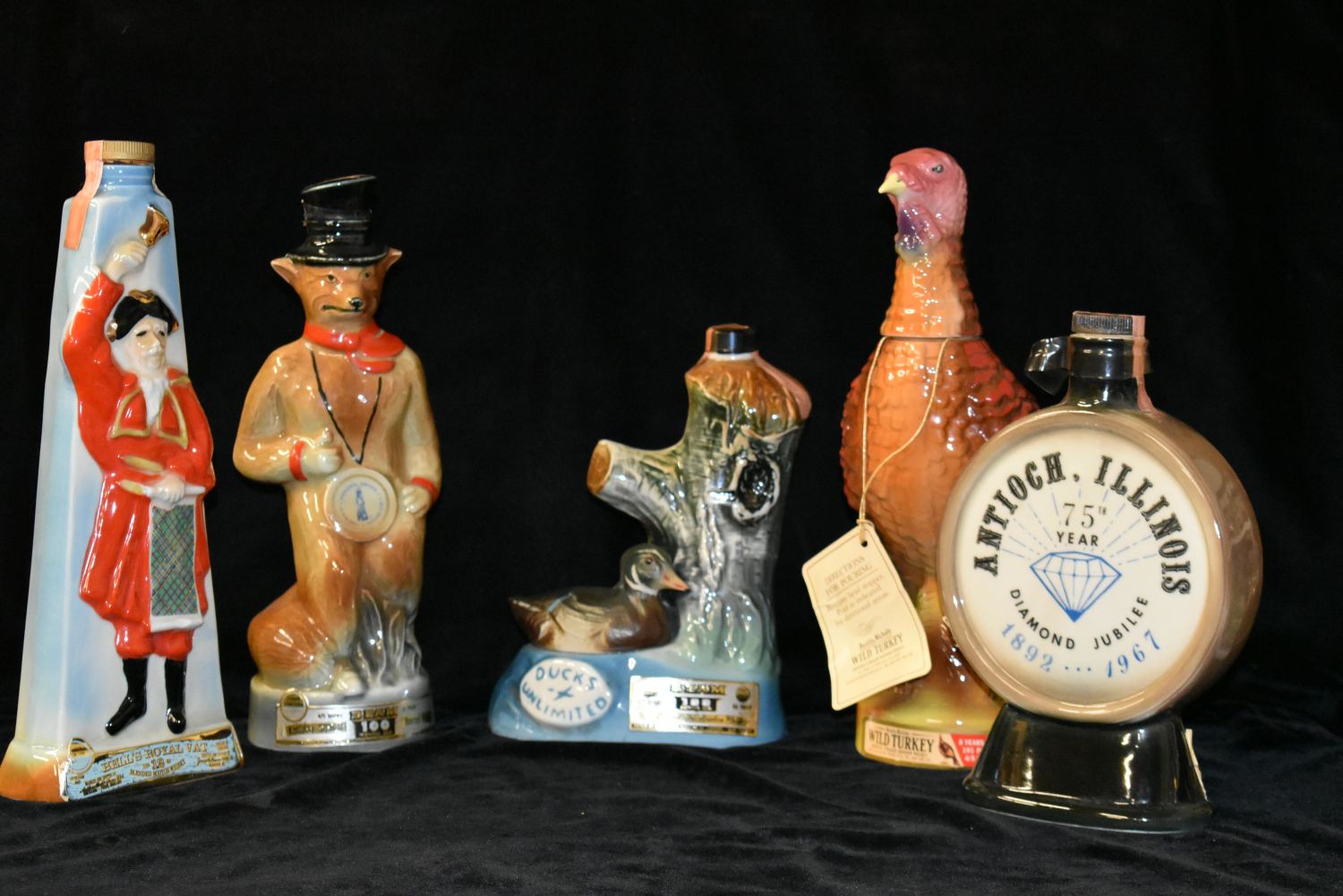 Lot of 5 Vintage Jim Beam Decanters Heartland Artifact Auctions is NOT RESPONSIBLE FOR BROKEN DECANTERS