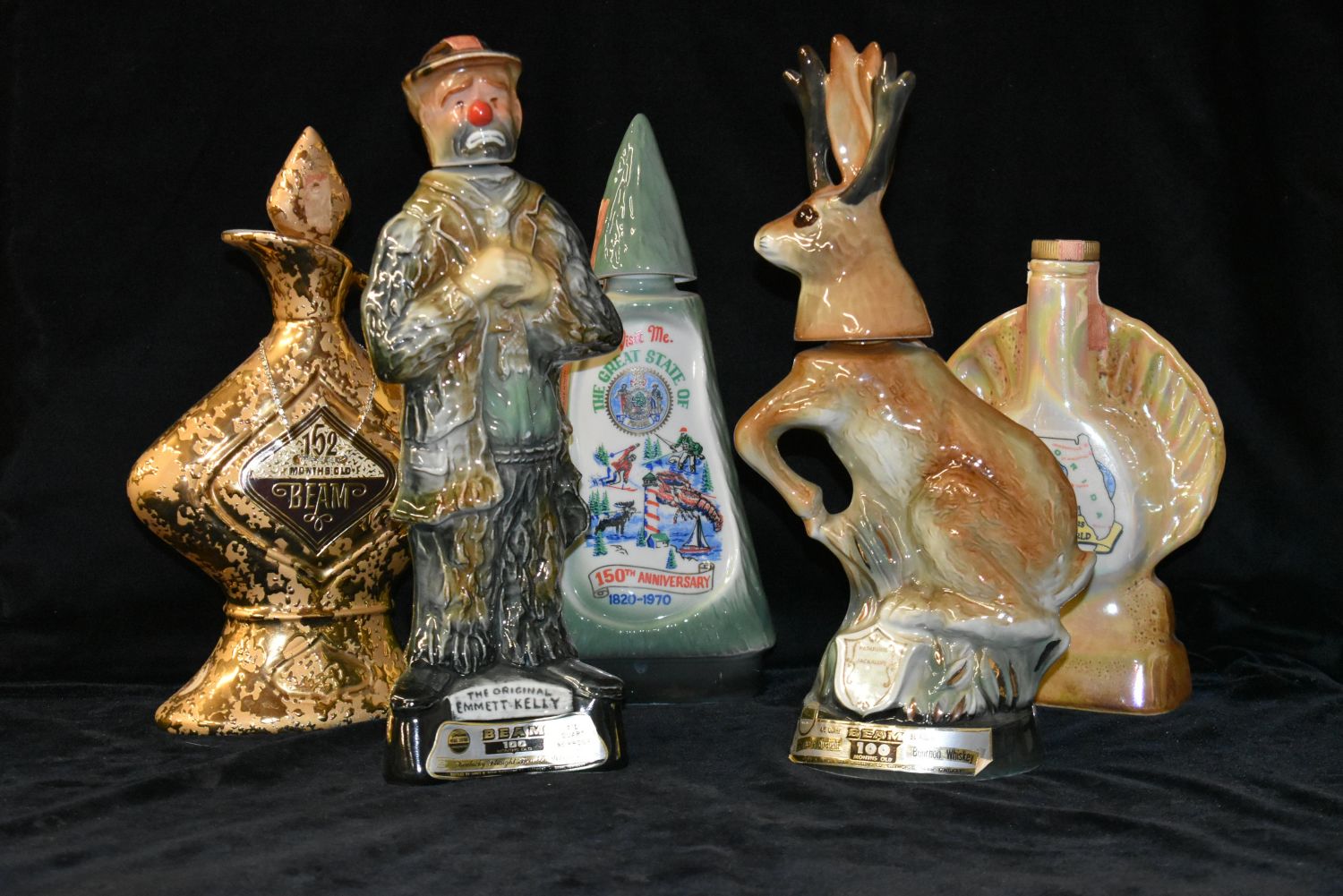 Lot of 5 Vintage Jim Beam Decanters Heartland Artifact Auctions is NOT RESPONSIBLE FOR BROKEN DECANTERS