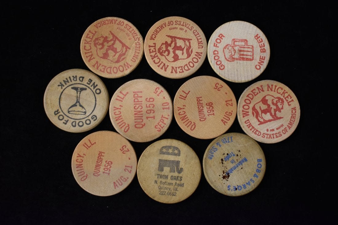 Lot of 10 Wooden Advertisement and Free Drink Tokens Condition: 100% Guaranteed Authentic via our Return Policy & Found on Private Property