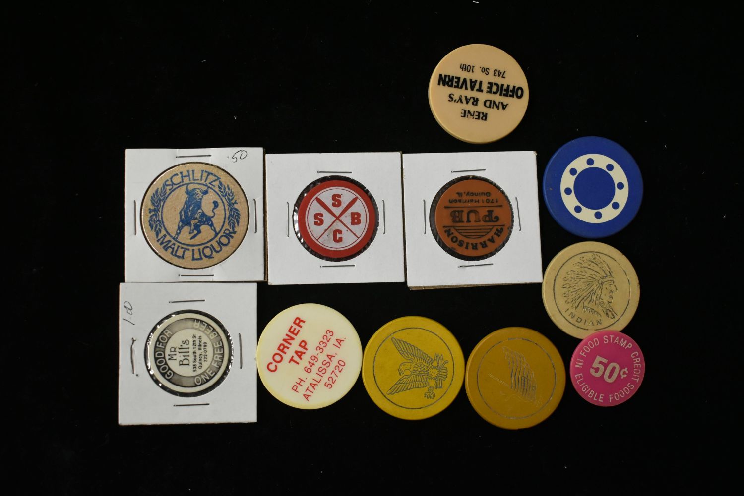 Lot of 10 Wooden Bake Lite and Plastic Tokens Condition: 100% Guaranteed Authentic via our Return Policy & Found on Private Property