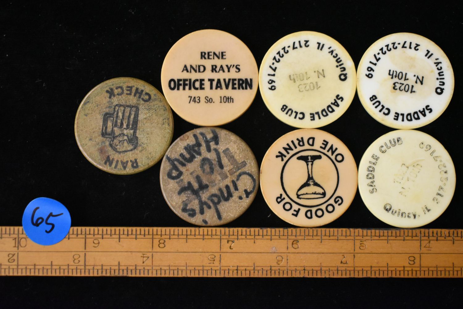 Lot of 7 Wooden and Bake Lite Tokens Condition: 100% Guaranteed Authentic via our Return Policy & Found on Private Property