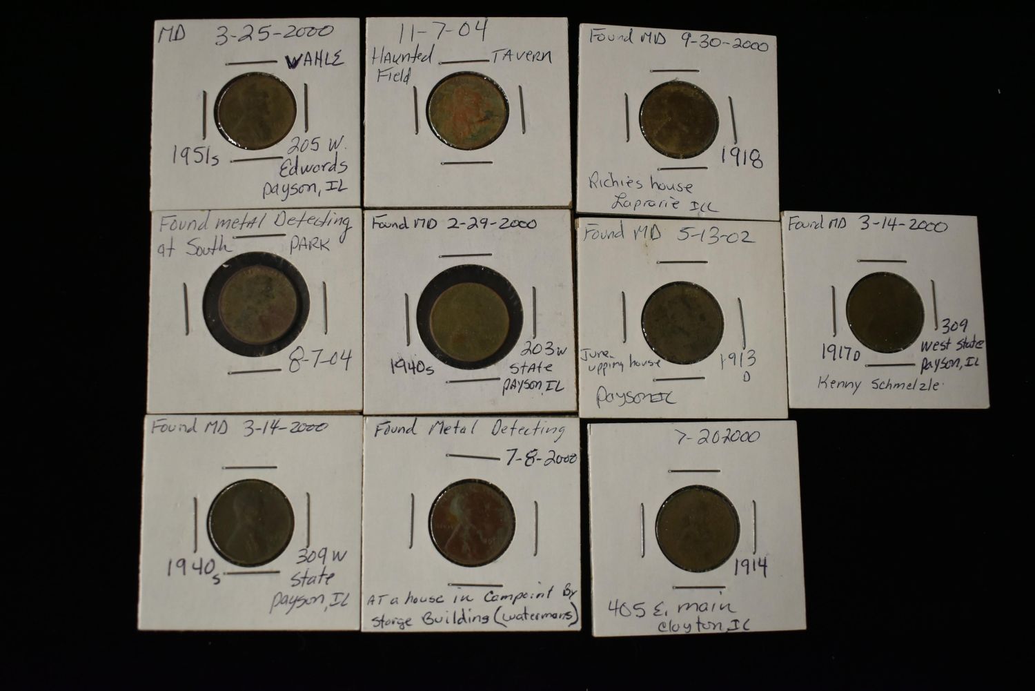 Lot of 10 Metal Detected Wheat and Lincoln Pennies found near Quincy Illinois Condition: 100% Guaranteed Authentic via our Return Policy & Found on Private Property