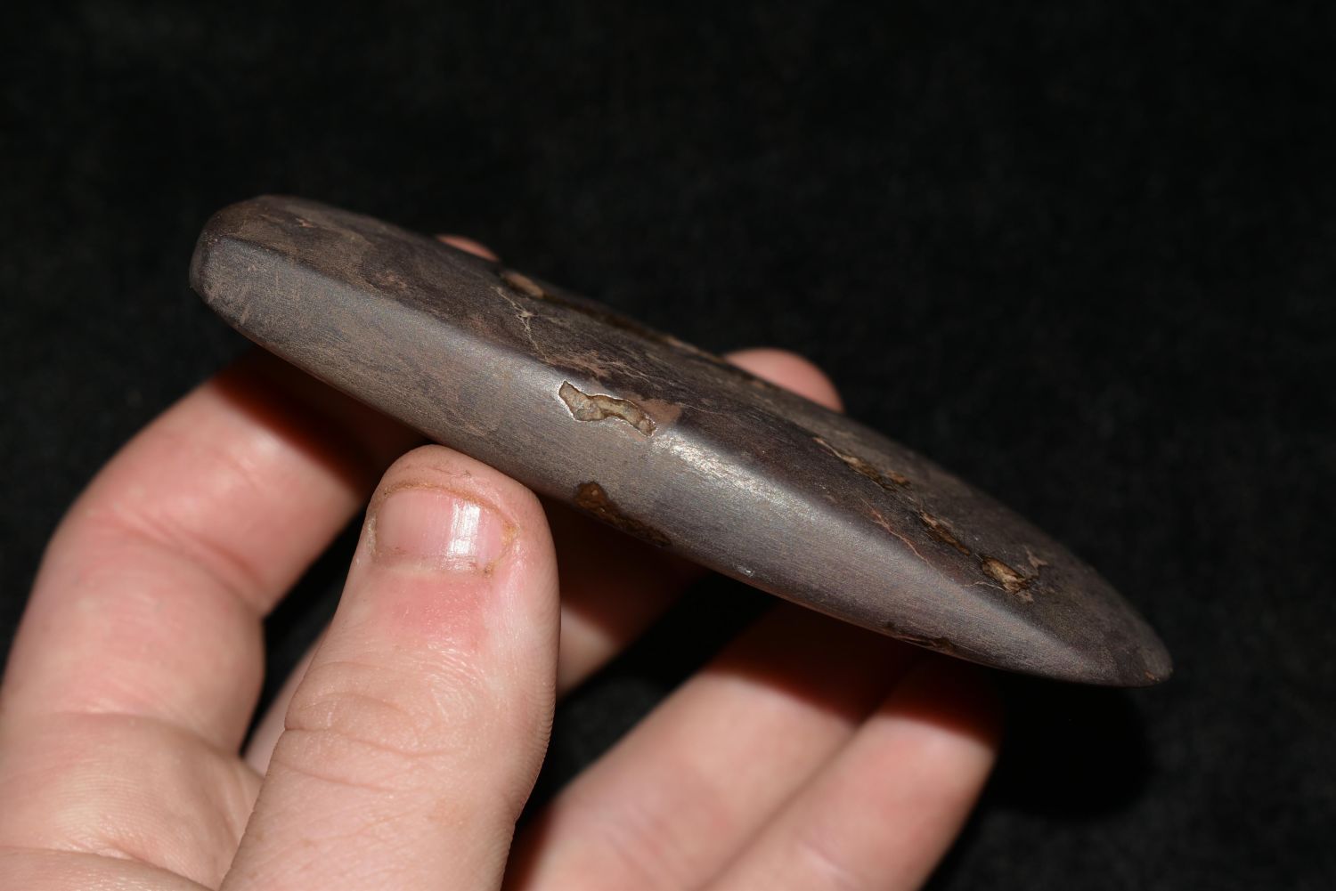 3 3/4" Hemitite Celt found in Lewis County Mo by John Burford Condition: 100% Guaranteed Authentic via our Return Policy & Found on Private Property
