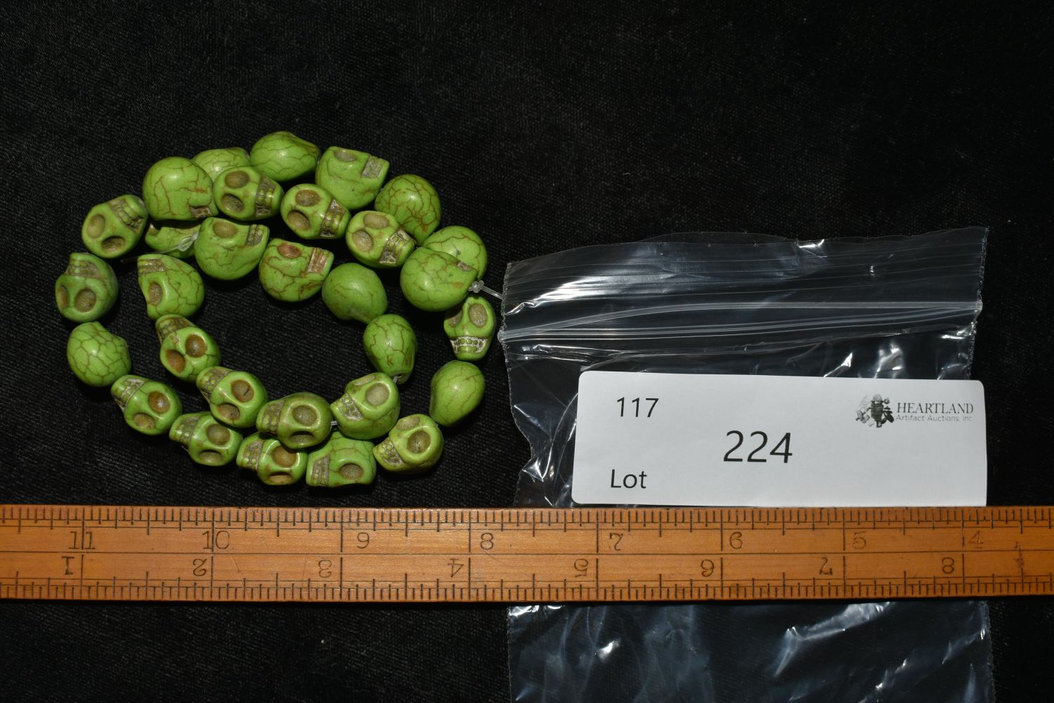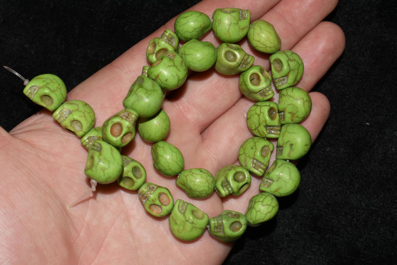 16" Strand of Green Skull Beads