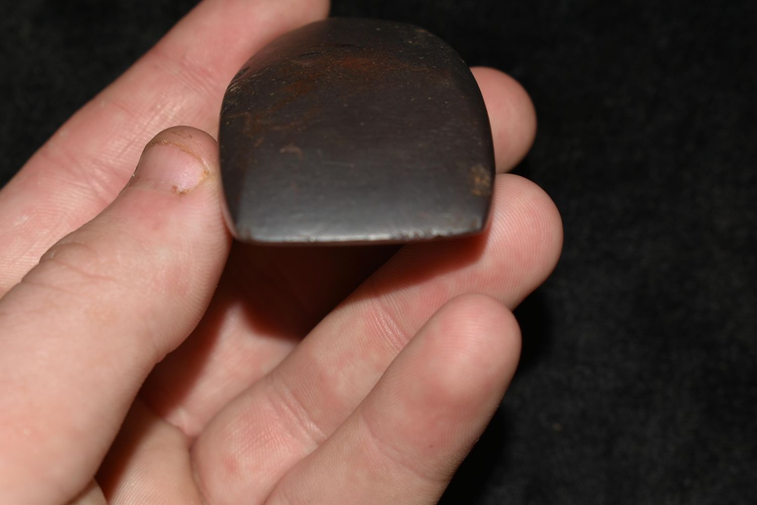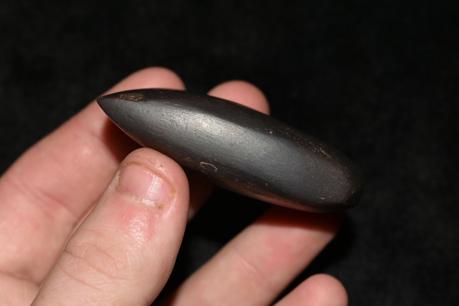 2 1/4" Very fine Hemitite Celt found in Lewis County Mo by John Burford Condition: 100% Guaranteed Authentic via our Return Policy & Found on Private Property