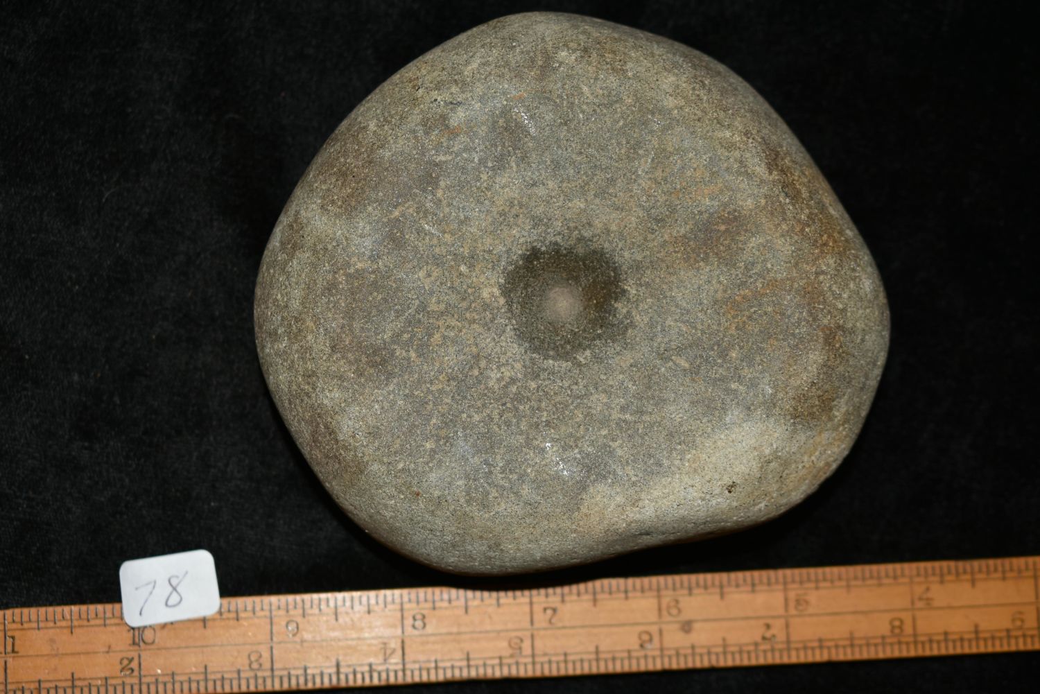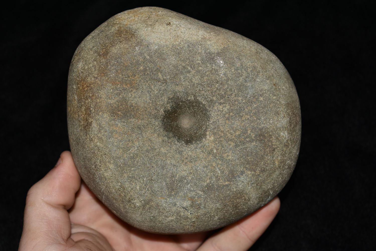4 1/2" Double cupped Nutting Stone found in Lewis County, Mo by John Burford Condition: 100% Guaranteed Authentic via our Return Policy & Found on Private Property