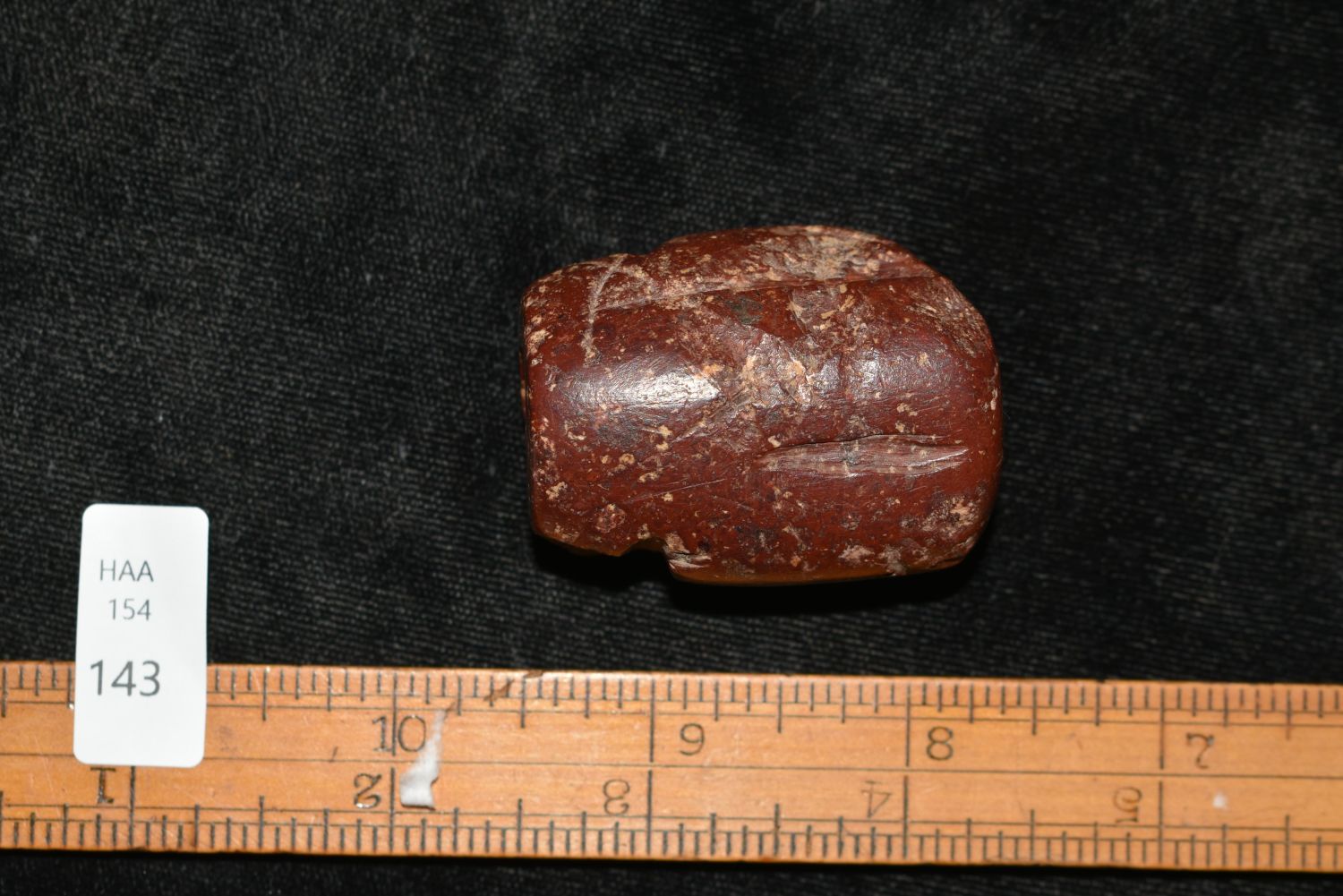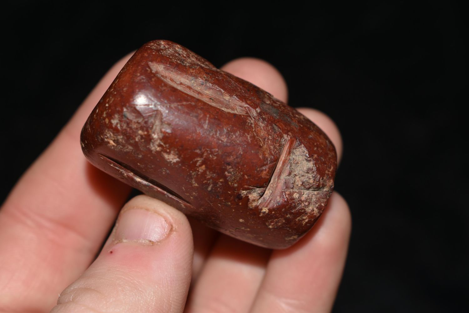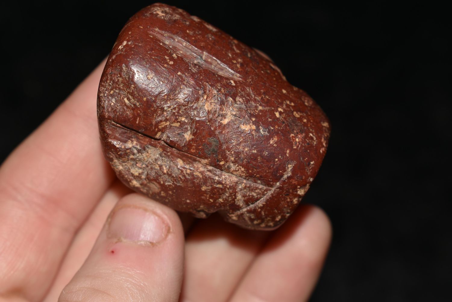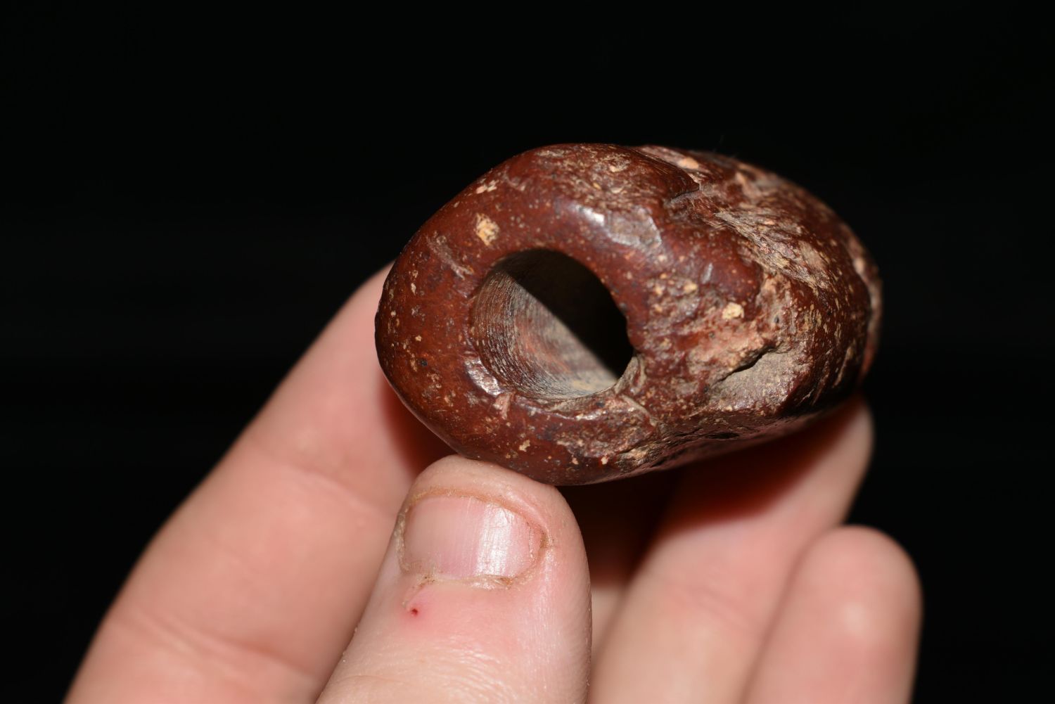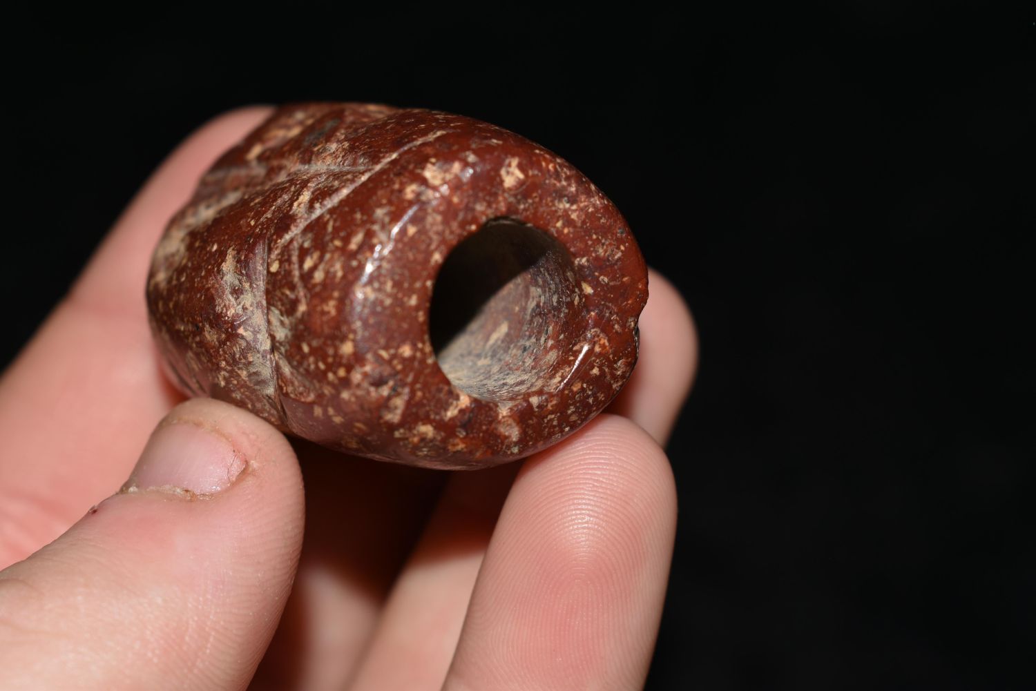 Rare 1 3/4" Jasper Effigy Bannerstone, Pictured in WW #11, in the Westbrook Collection, Morehouse Parish, Louisiana Authentic Native American Artifact