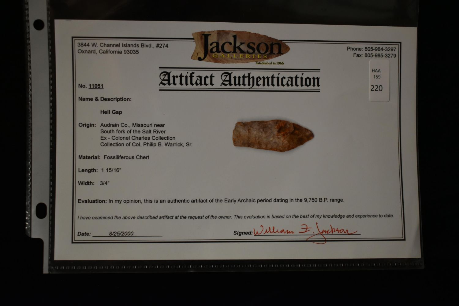 1 15/16" Hell Gap found in Audrain Co., Missouri Jackson C.O.A Authentic Native American Artifact