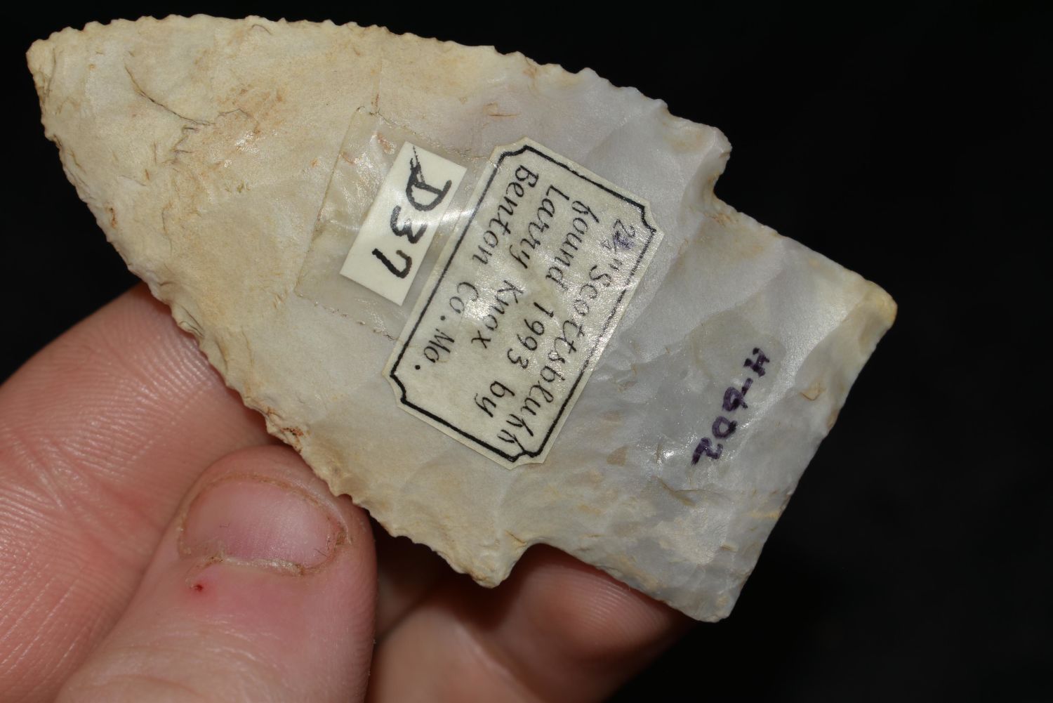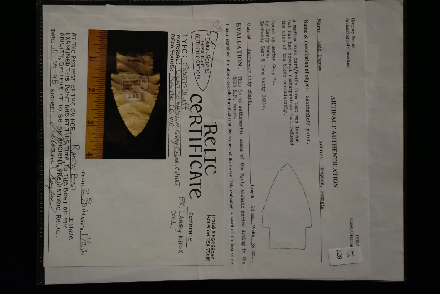 2 5/8" Scottsbluff found in Benton Co., Missouri Rogers, Perino, x2 Jackson C.O.A Authentic Native American Artifact