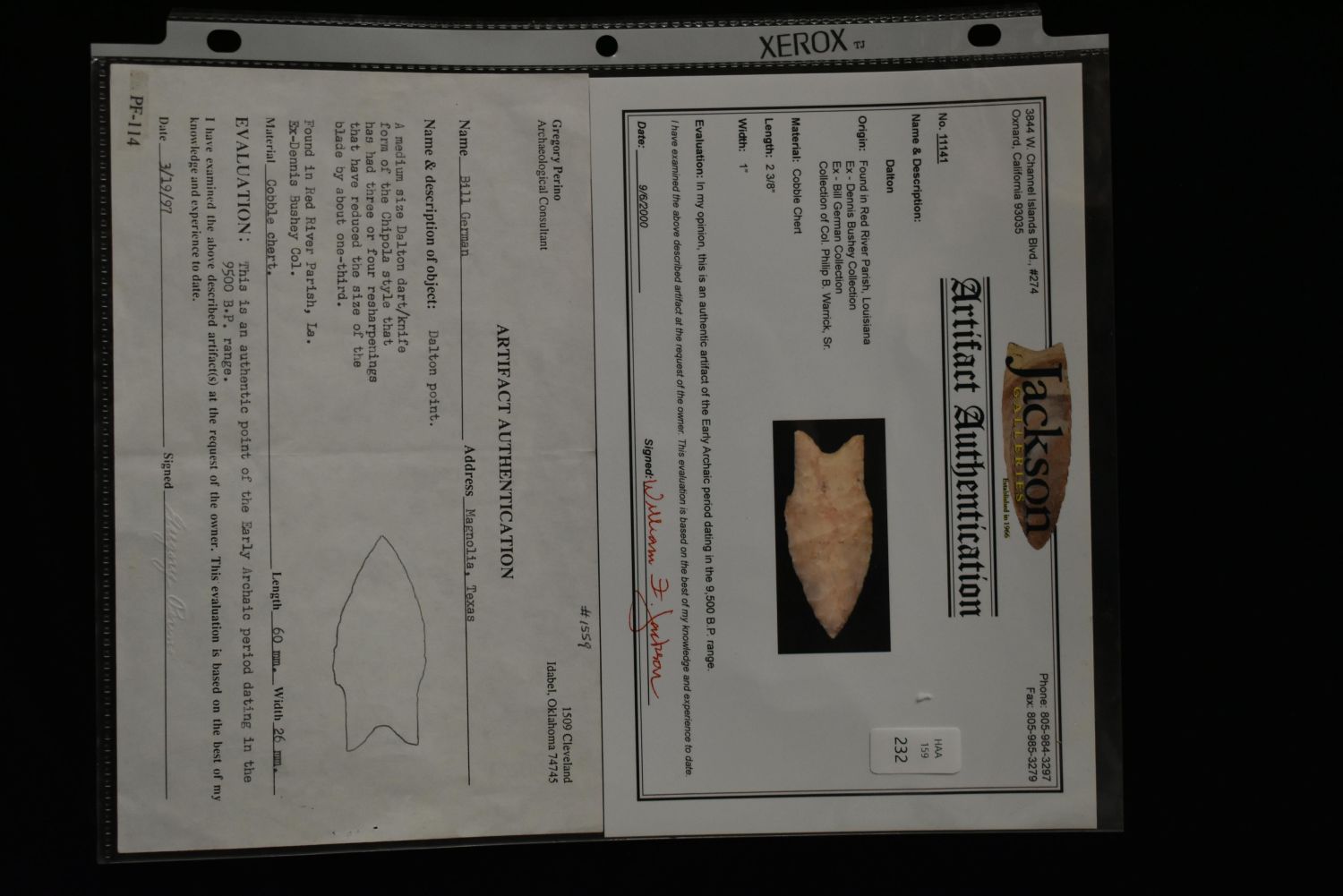 2 3/8" Dalton, Red River Parish Louisiana, Jackson/Perino C.O.A Authentic Native American Artifact