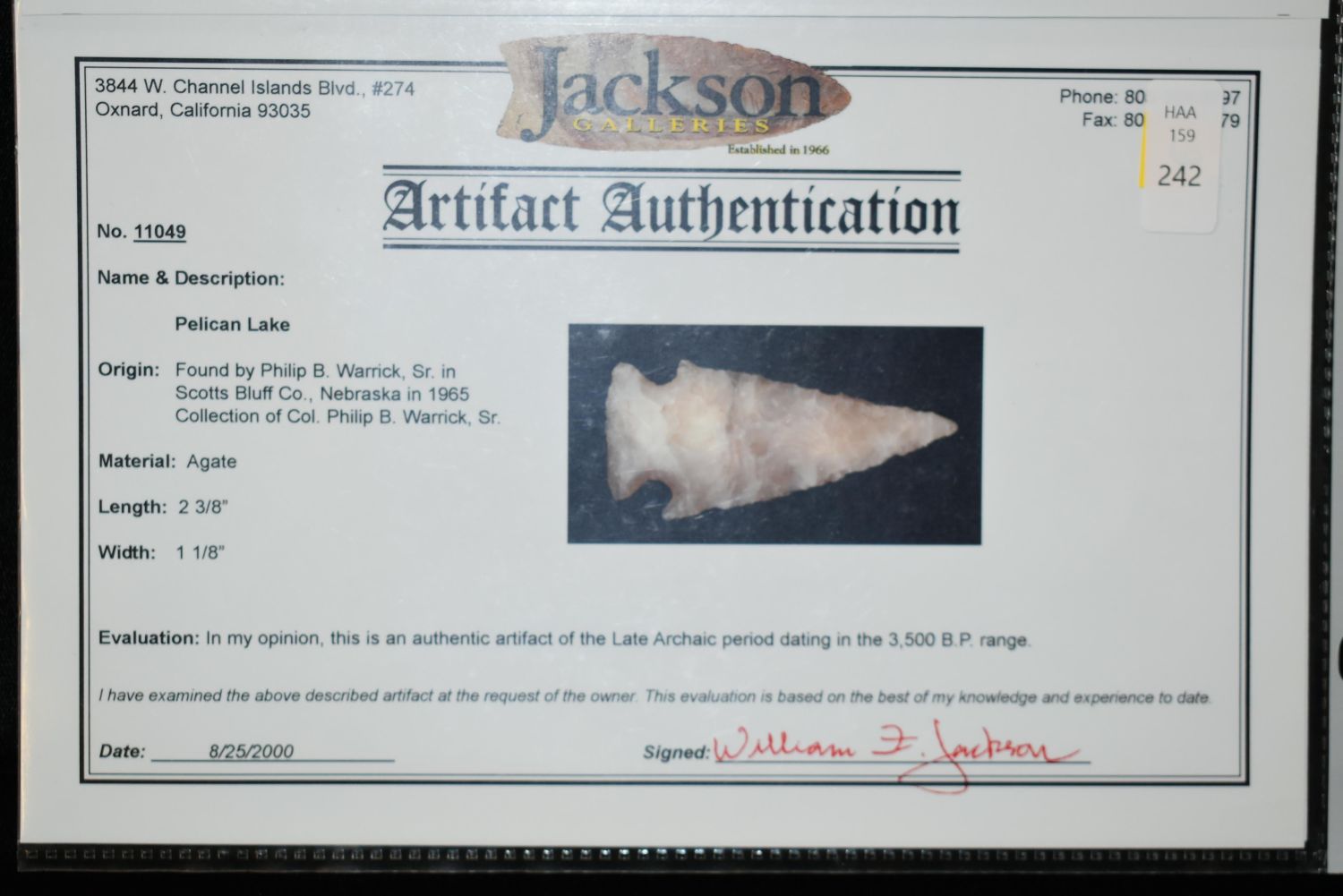 2 3/8" Pelican Lake, Scotts Bluff Co., Nebraska, Jackson C.O.A Authentic Native American Artifact
