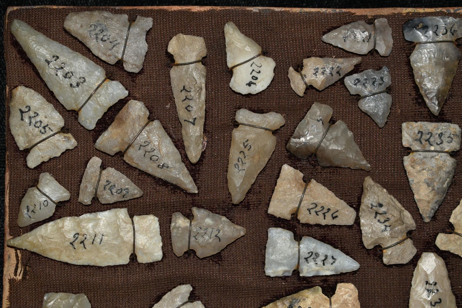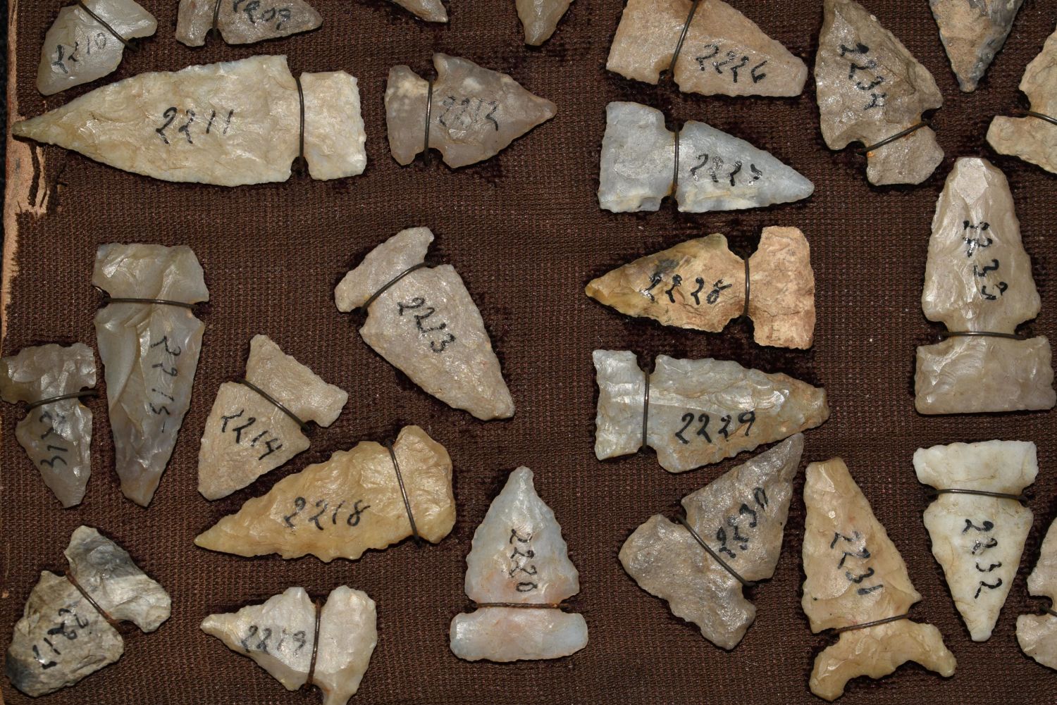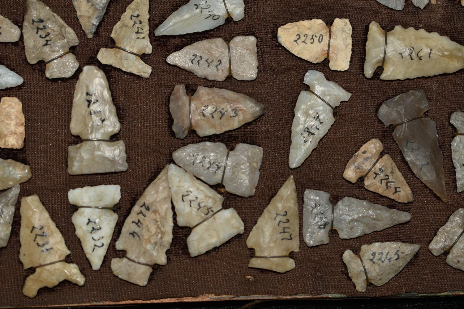 Approximately 61 Birdpoints found in New Mexico, All Wire Wrapped on a Antique 8 x 4 1/2" Board Authentic Native American Artifact