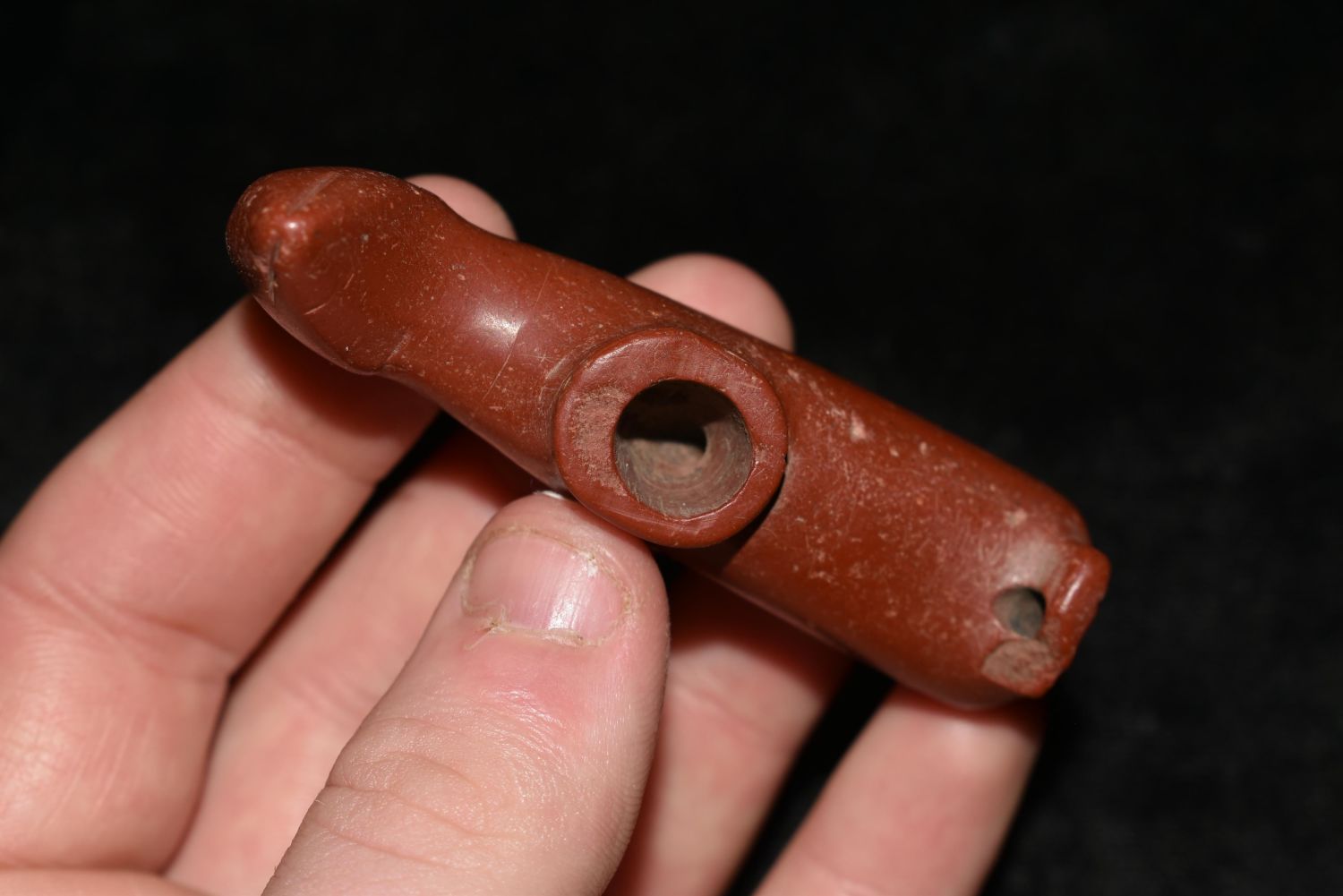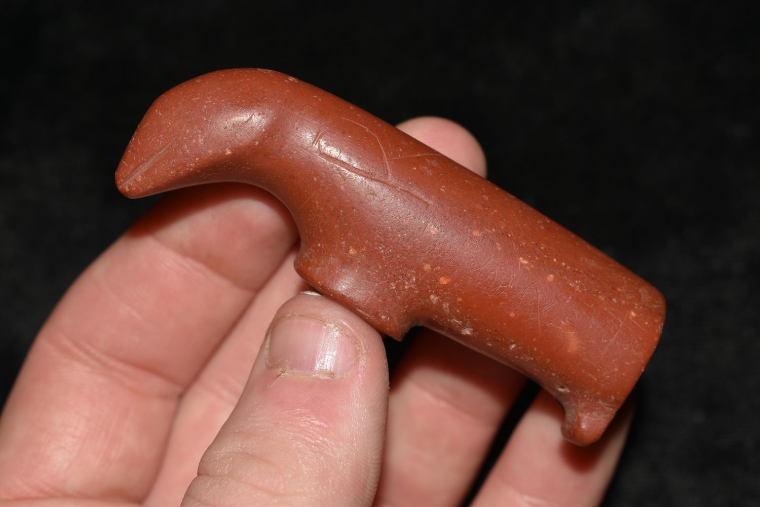 Extremely Rare 2 3/4" Ground Hog Effigy Catlinite Disc Pipe Authentic Native American Artifact, Early 1800’s. Kansas City Area.