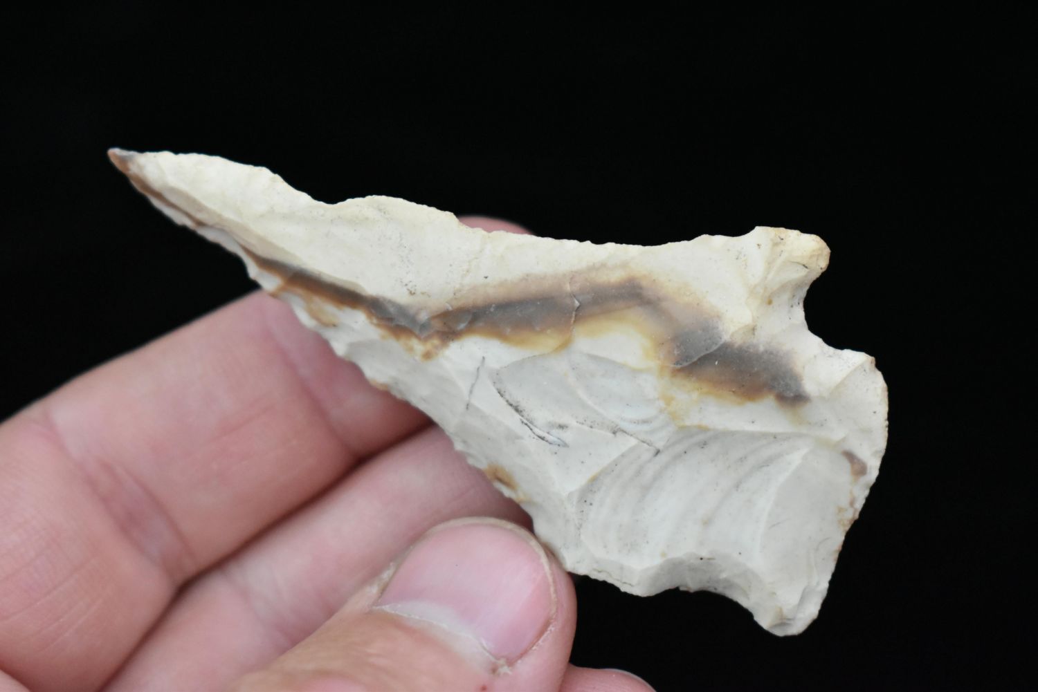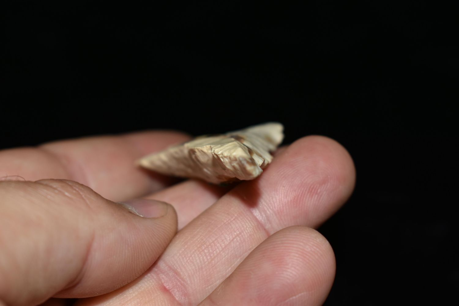 2 7/8" Steeply Beveled Rice Lobbed, Found by Herb Sanders in Douglas Co Missouri, Authentic Native American Arrowhead, Artifact