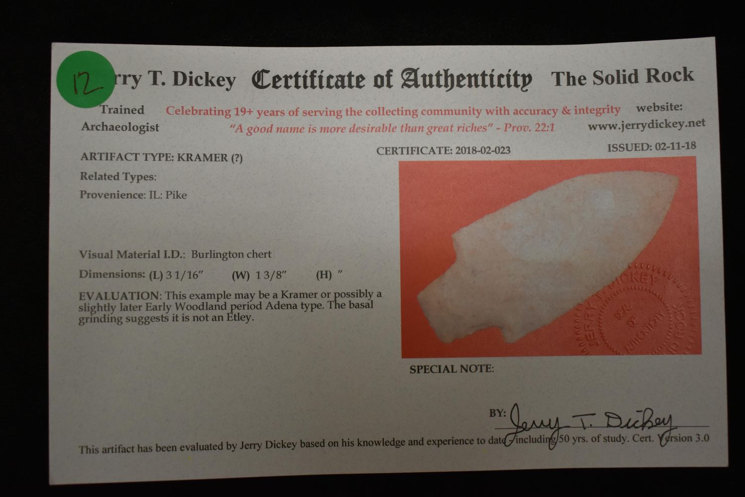 3 1/16" Kramer found in Pike Co., Illinois, Dickey C.O.A Condition: 100% Guaranteed Authentic via our Return Policy & Found on Private Property