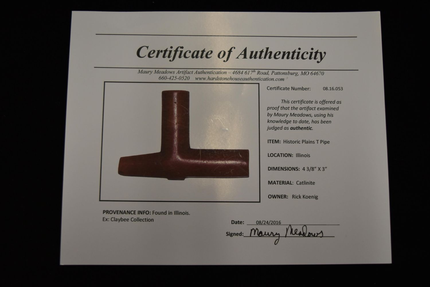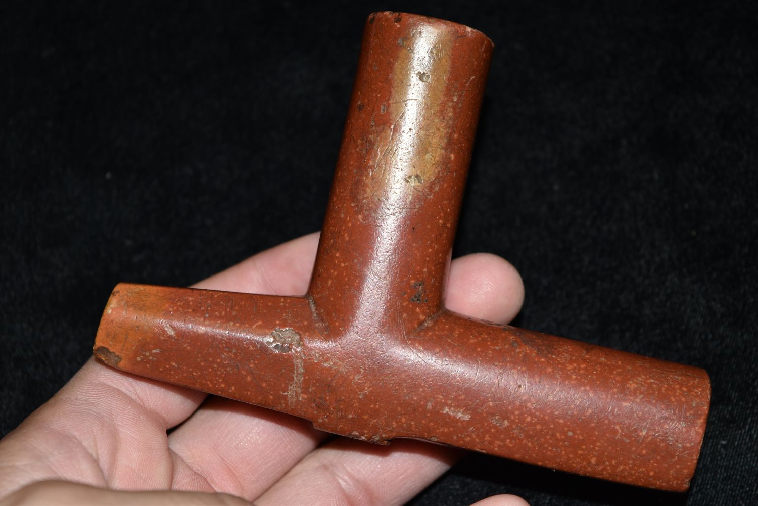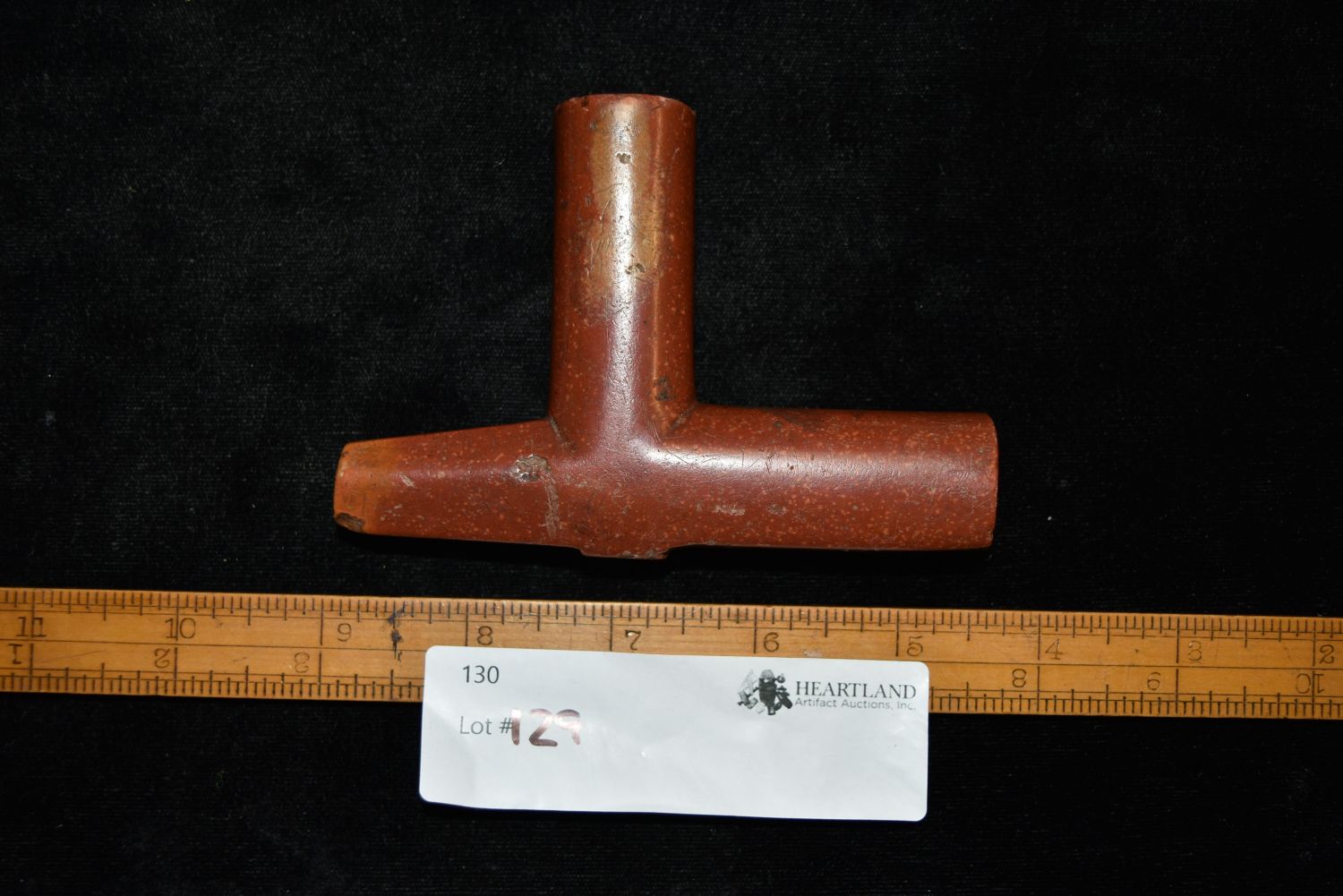4 3/8" Catlinite Historic Plains T Pipe, Meadows COA, Illinois Condition: 100% Guaranteed Authentic via our Return Policy & Found on Private Property