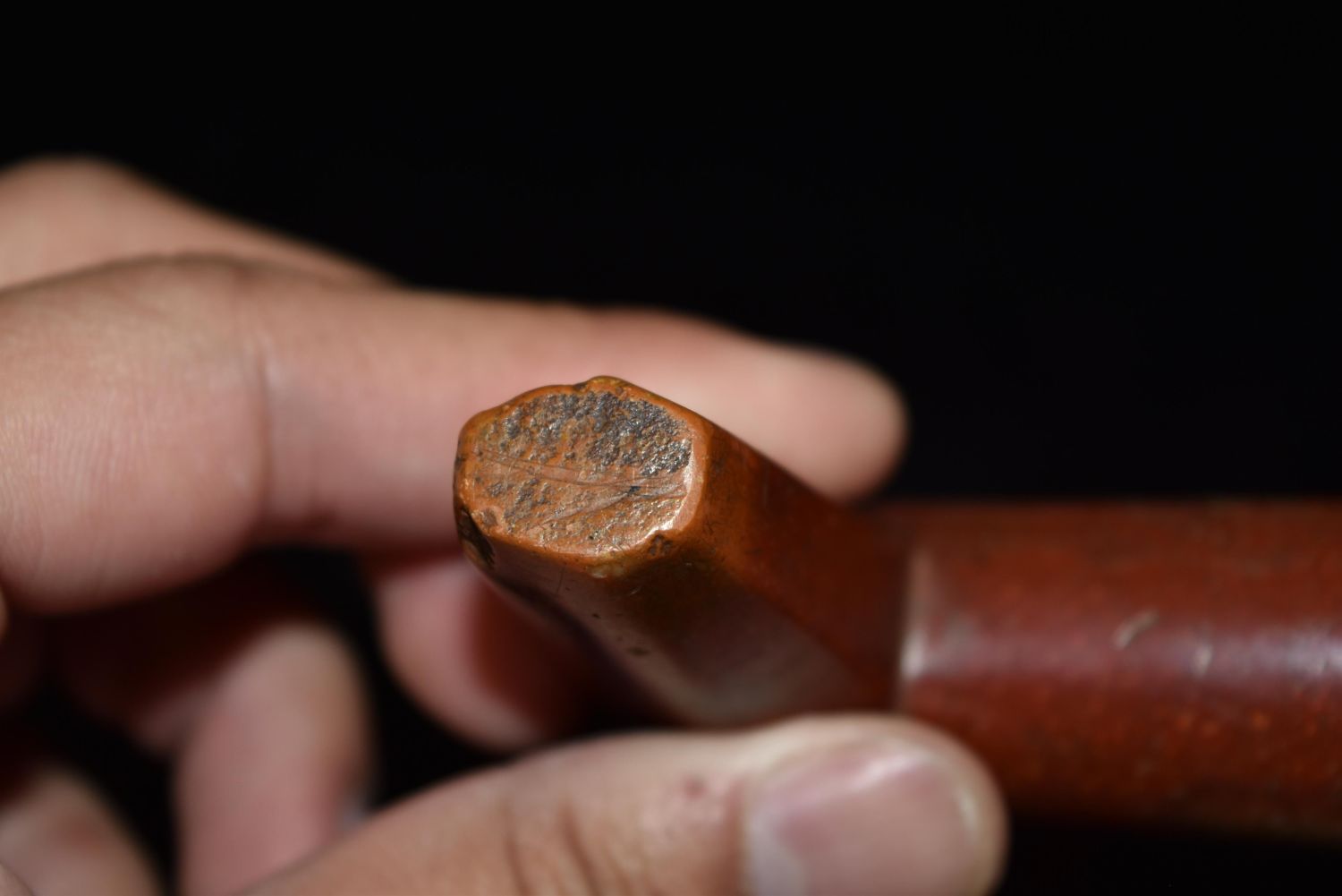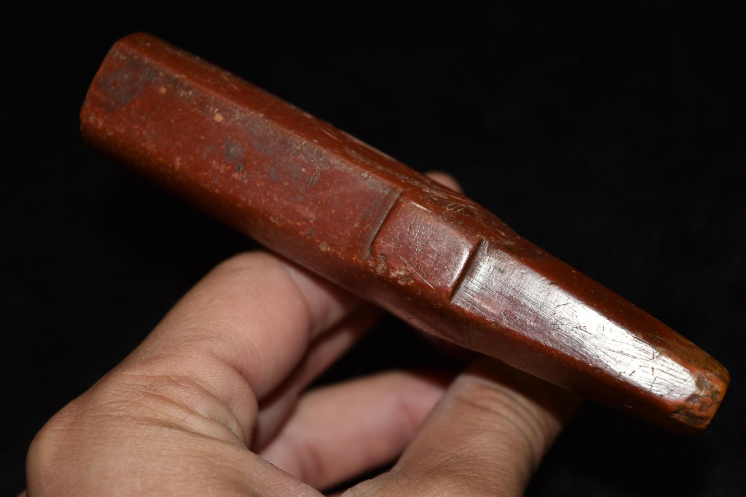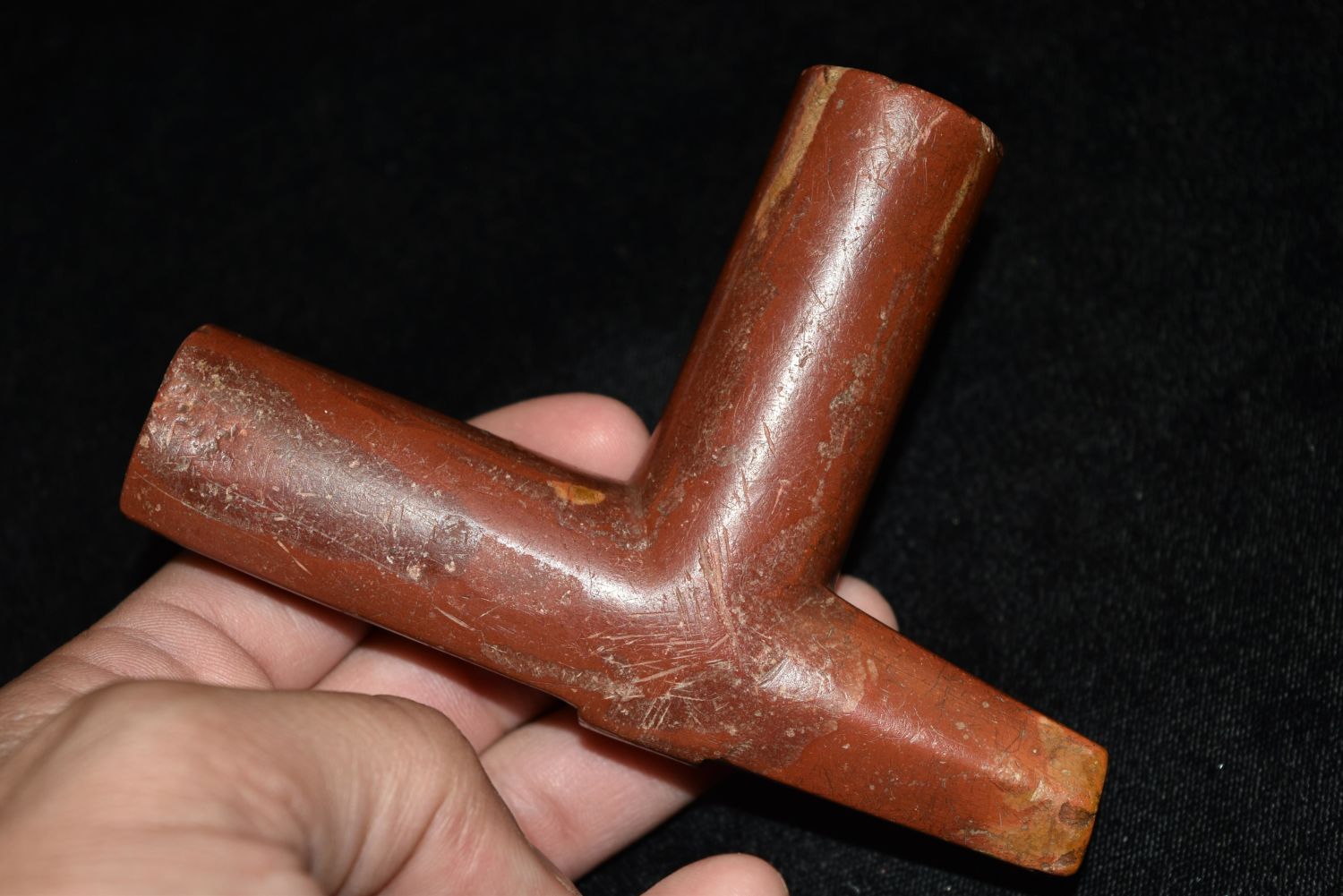 4 3/8" Catlinite Historic Plains T Pipe, Meadows COA, Illinois Condition: 100% Guaranteed Authentic via our Return Policy & Found on Private Property