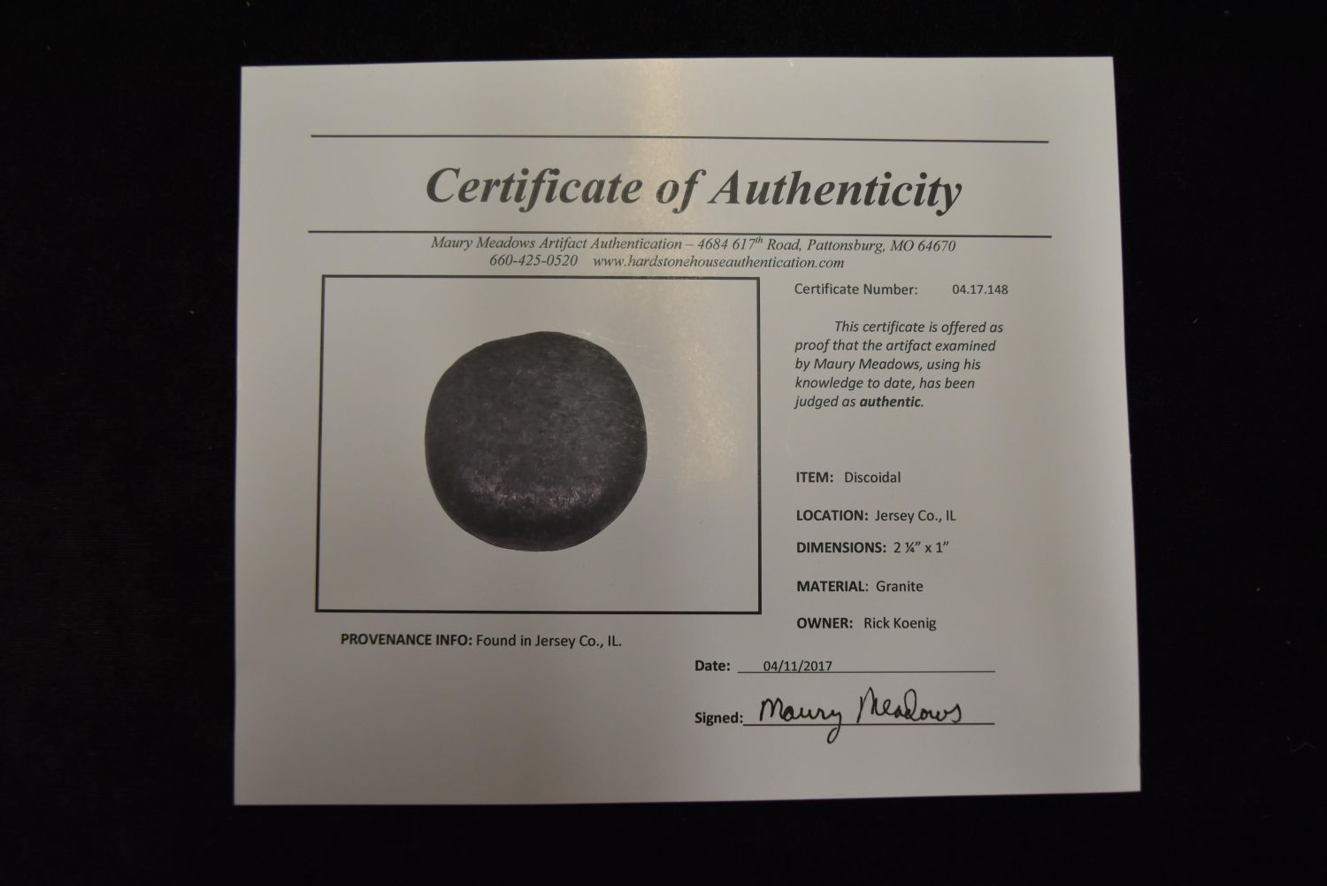 2 1/4" Discoidal, Meadows COA, Jersey Co, Illinois