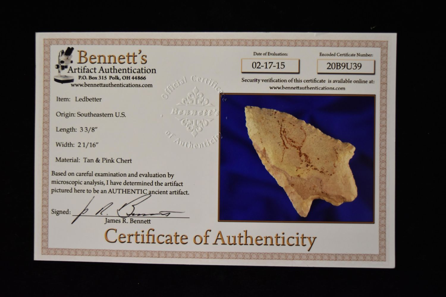 3 3/8" Ledbetter Point, Bennett COA, Ex Jerry Inman Collection, Georgia Condition: 100% Guaranteed Authentic via our Return Policy & Found on Private Property