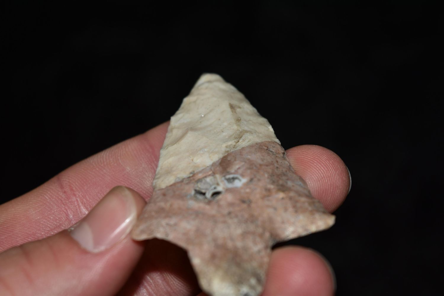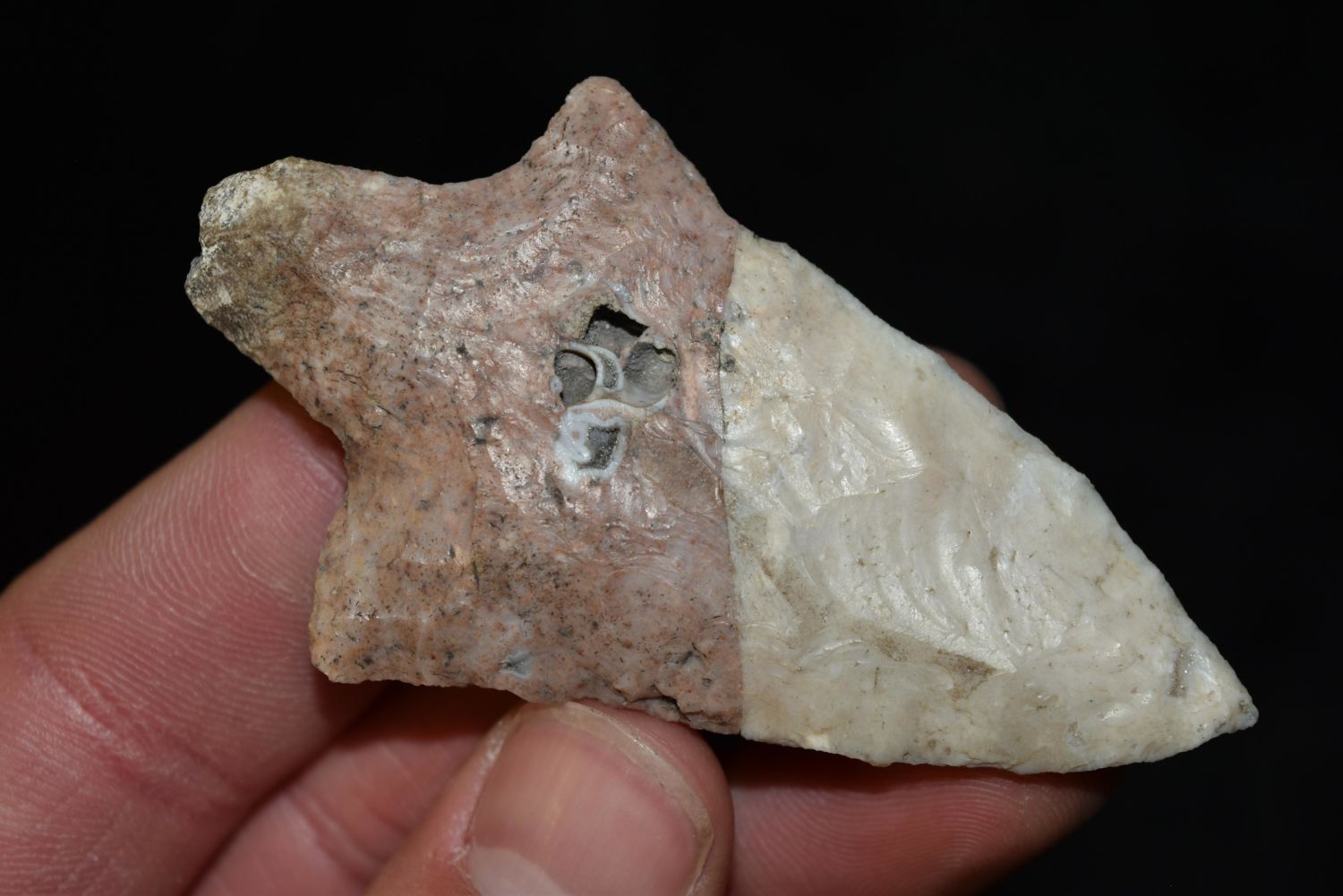 3" Colorful Adena Point with Fossil Inclusion, Missouri Condition: 100% Guaranteed Authentic via our Return Policy & Found on Private Property