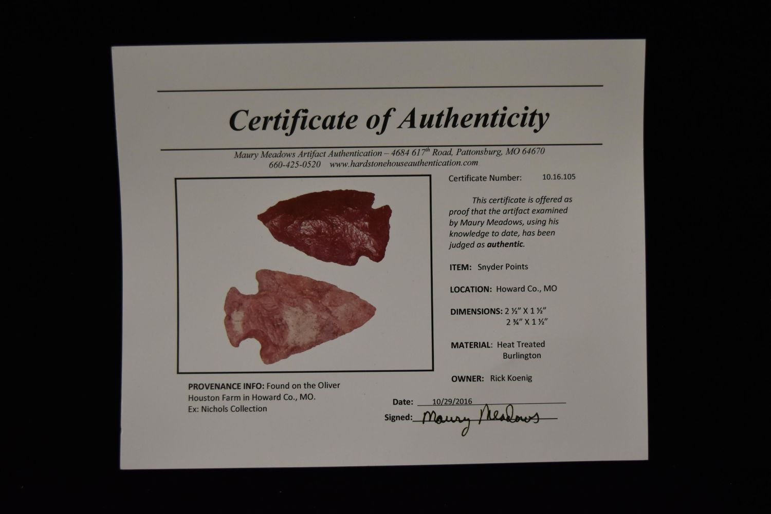 2 3/4" Snyders Point, Meadows COA, Howard Co, Missouri, Ex Nichols Collection Condition: 100% Guaranteed Authentic via our Return Policy & Found on Private Property
