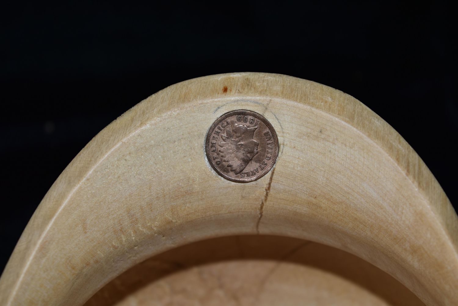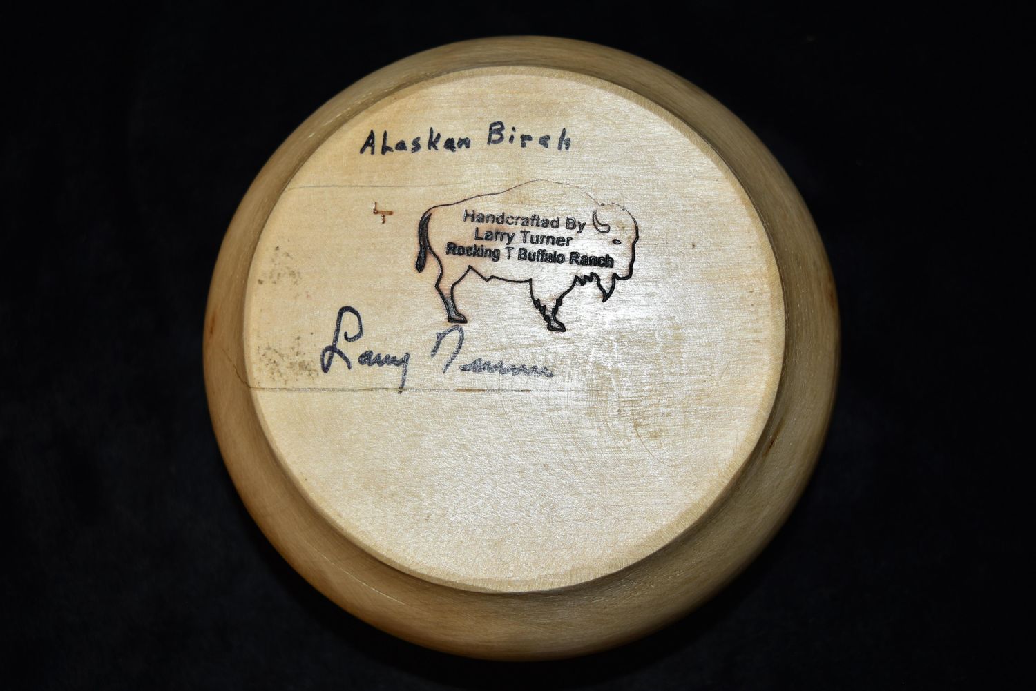 Handcrafted Alaskan Birch Wood Bowl with Indian Wheat Penny Made by Larry Turner Condition: 100% Guaranteed Authentic via our Return Policy & Found on Private Property