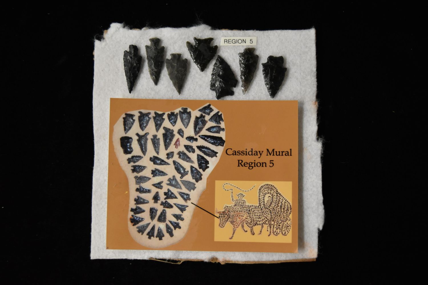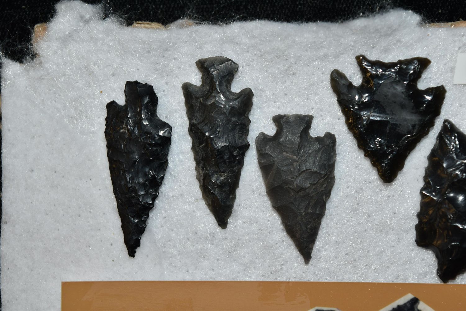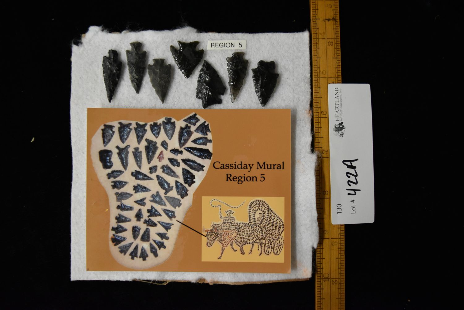 Lot of 7 Obsidian Points from Cassiday Mural Region 5, Lake Co, Oregon, All Points are from the famous Hank Cassiday Mural