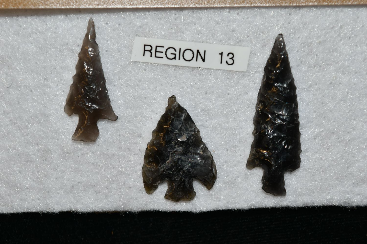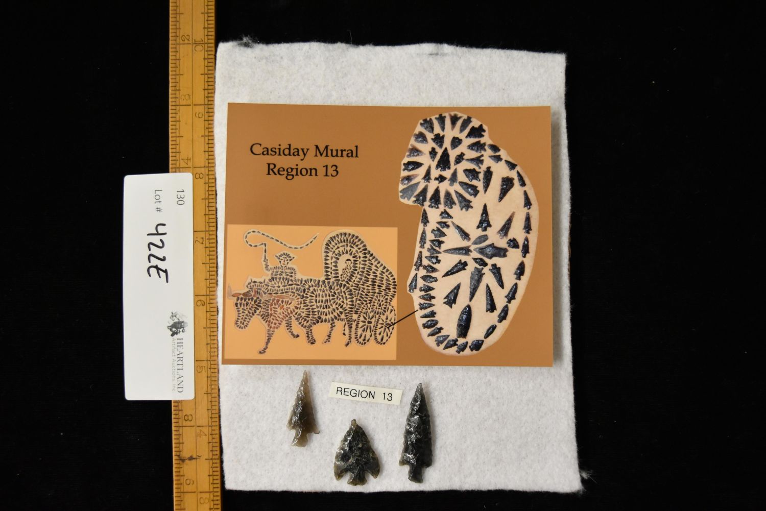 Lot of 3 Obsidian Points from Cassiday Mural Region 13, Lake Co, Oregon, All Points are from the famous Hank Cassiday Mural