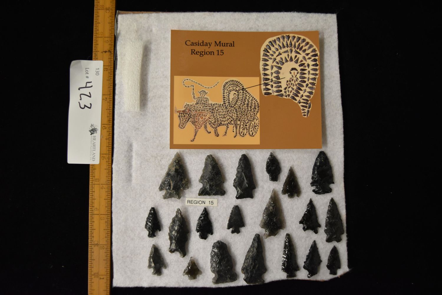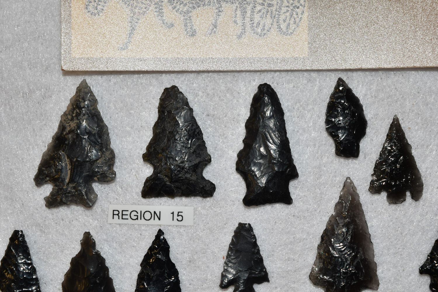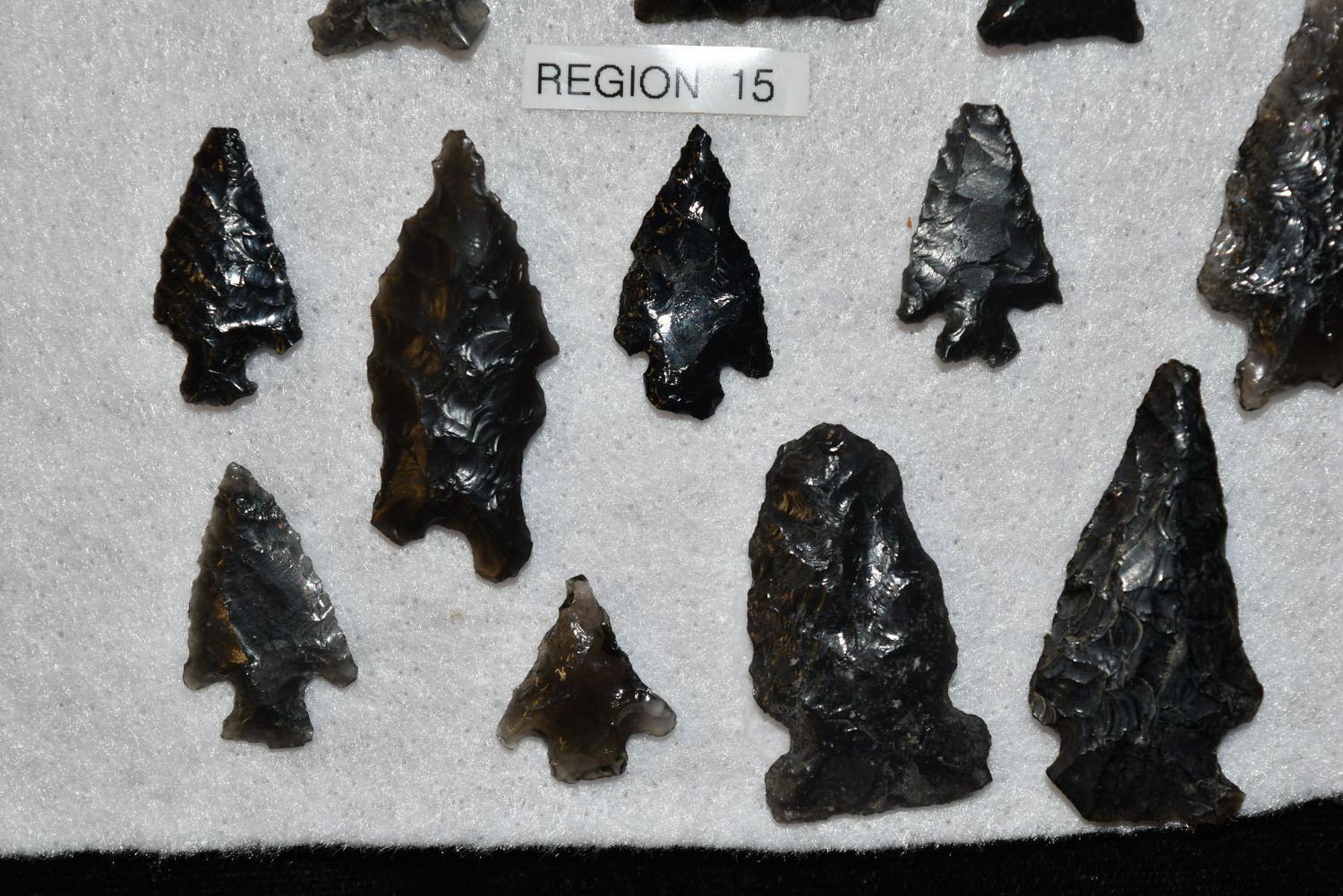 Lot of 20 Obsidian Points from Cassiday Mural Region 15, Lake Co, Oregon, All Points are from the famous Hank Cassiday Mural