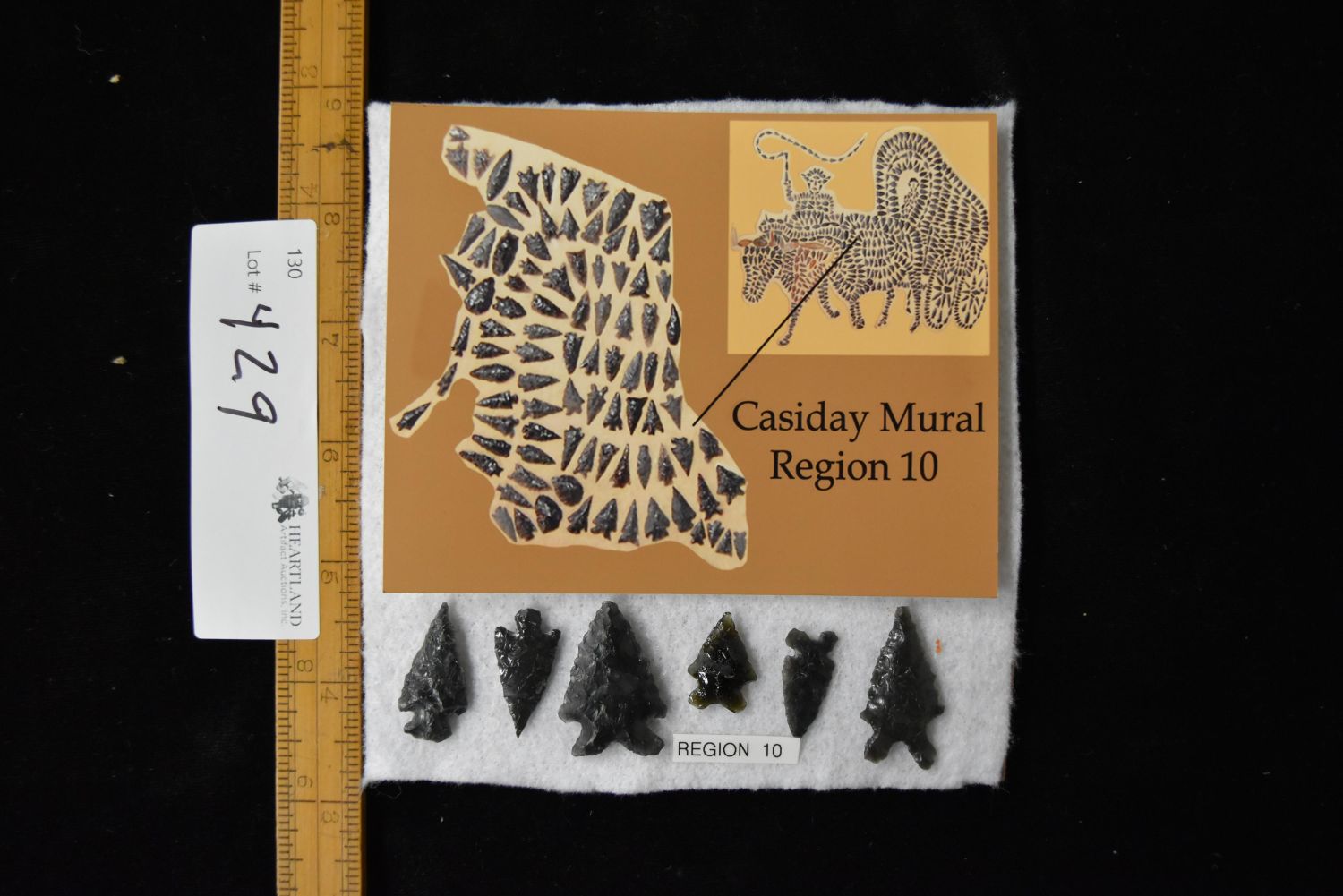 Lot of 6 Obsidian Points from Cassiday Mural Region 10, Lake Co, Oregon, All Points are from the famous Hank Cassiday Mural