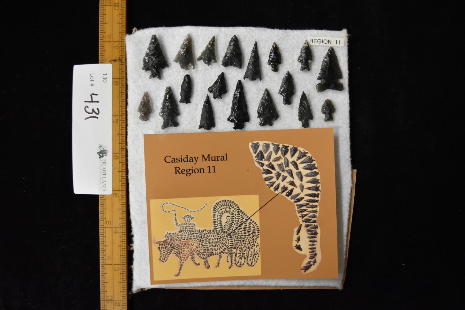 Lot of 18 Obsidian Points from Cassiday Mural Region 11, Lake Co, Oregon, All Points are from the famous Hank Cassiday Mural
