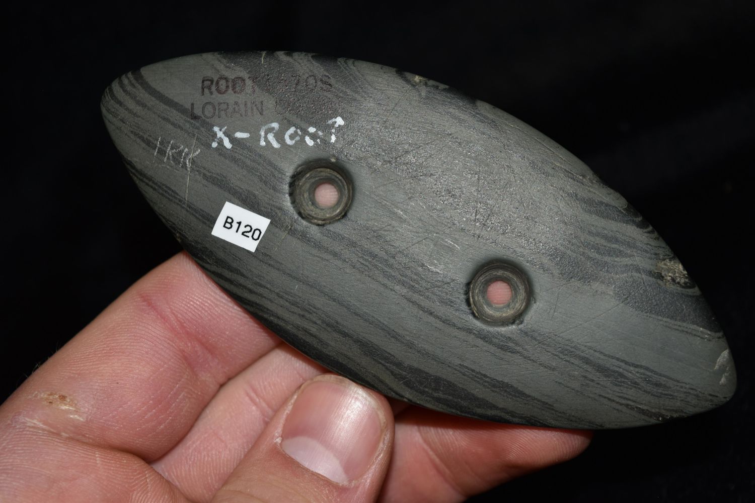 4 3/8" Gorget, Ex Root, Lorain Co, Ohio Condition: 100% Guaranteed Authentic via our Return Policy & Found on Private Property