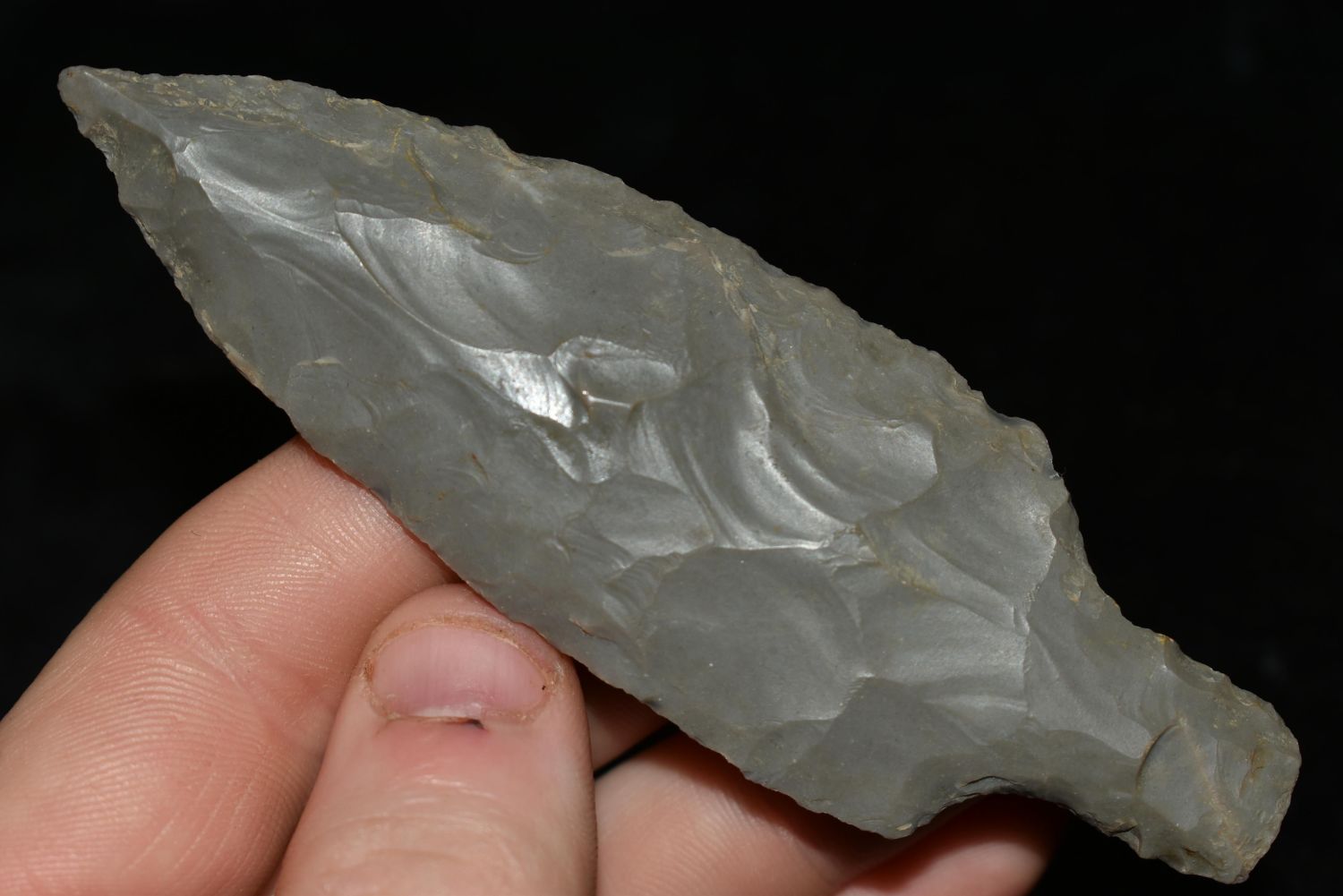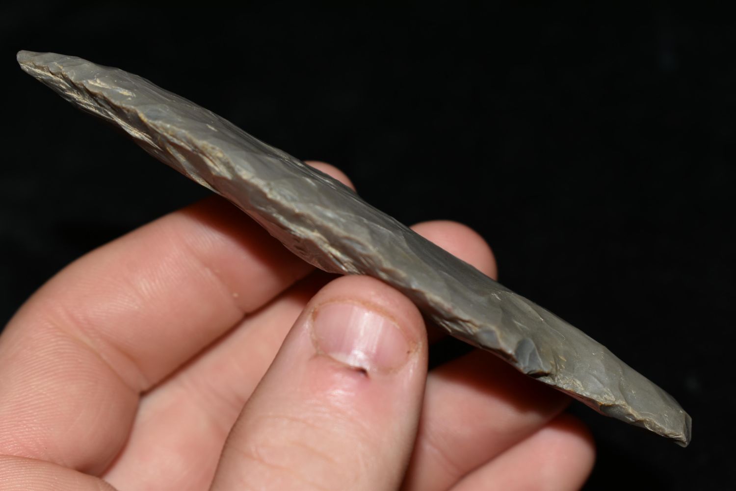 4" Adena Narrow found in Montgomery Co., Indiana Condition: 100% Guaranteed Authentic via our Return Policy & Found on Private Property