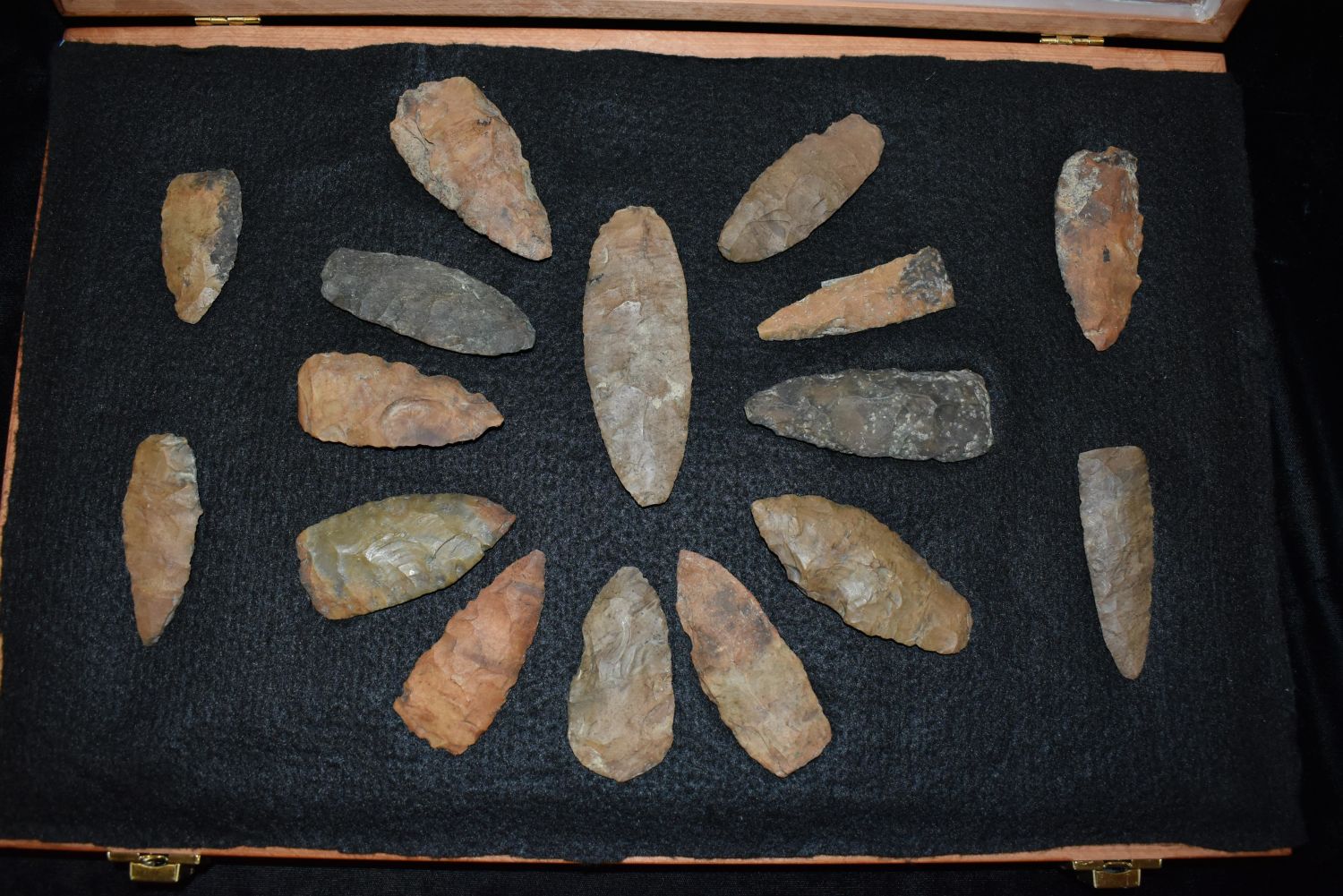 Frame Containing Cache of 16 Blades found in Shelby County Kentucky, Largest is 4 3/8"