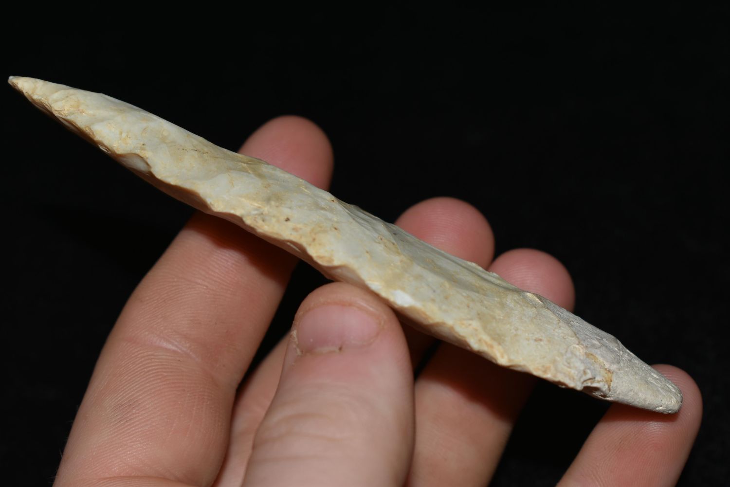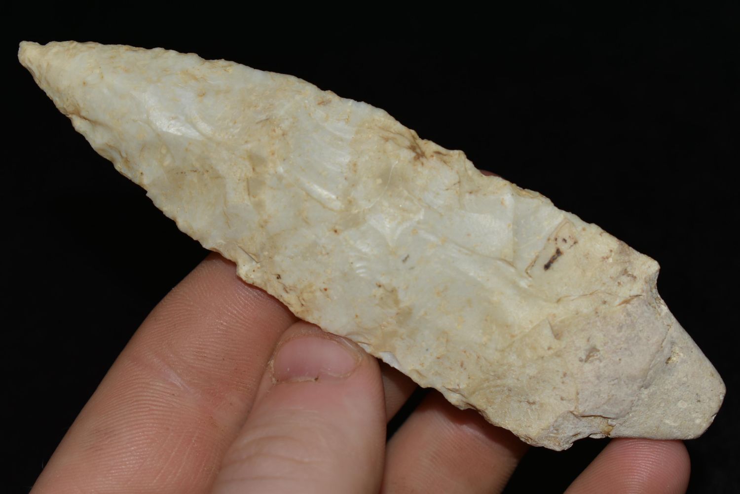 4 1/4" Adena with a restored base, done by Steve Koch himself. This collection contains the personally found relics of Steve Koch, Winchester Illinois. Steve hunted relics his entire life with family and friends. He mainly hunted in the Scott Co., Illinois area, and the majority of his finds came from the Illinois River Valley. This is the first 300+- lots of this collection to be auction.