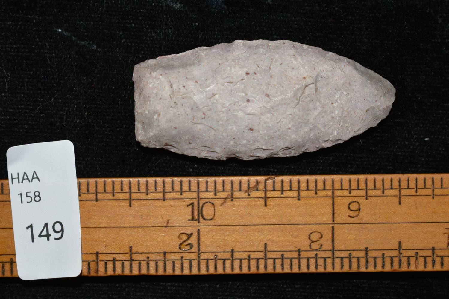 2" Karnak, This collection contains the personally found relics of Steve Koch, Winchester Illinois. Steve hunted relics his entire life with family and friends. He mainly hunted in the Scott Co., Illinois area, and the majority of his finds came from the Illinois River Valley. This is the first 300+- lots of this collection to be auction.