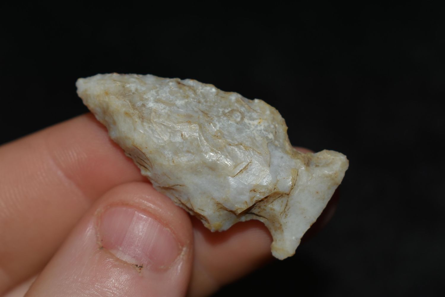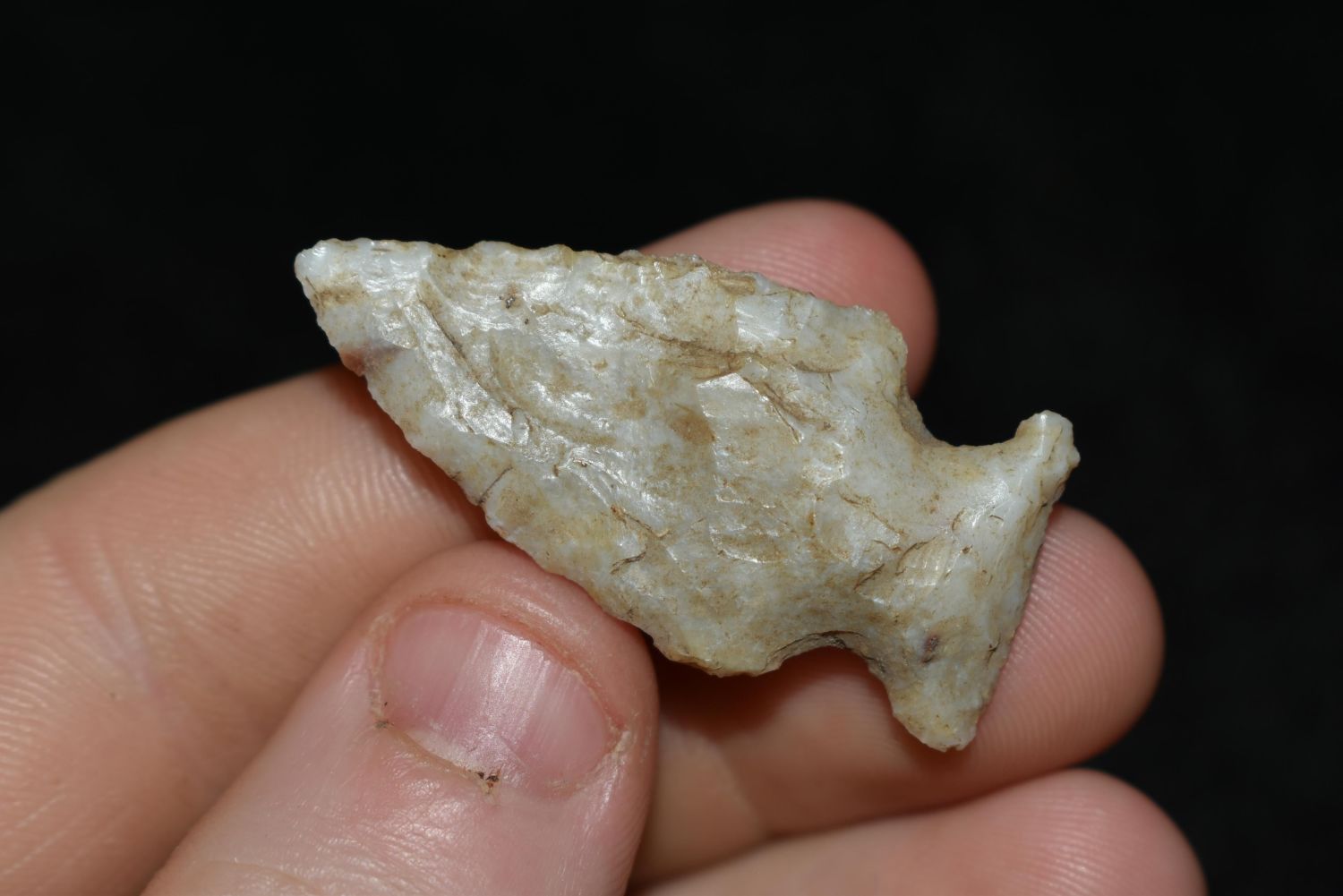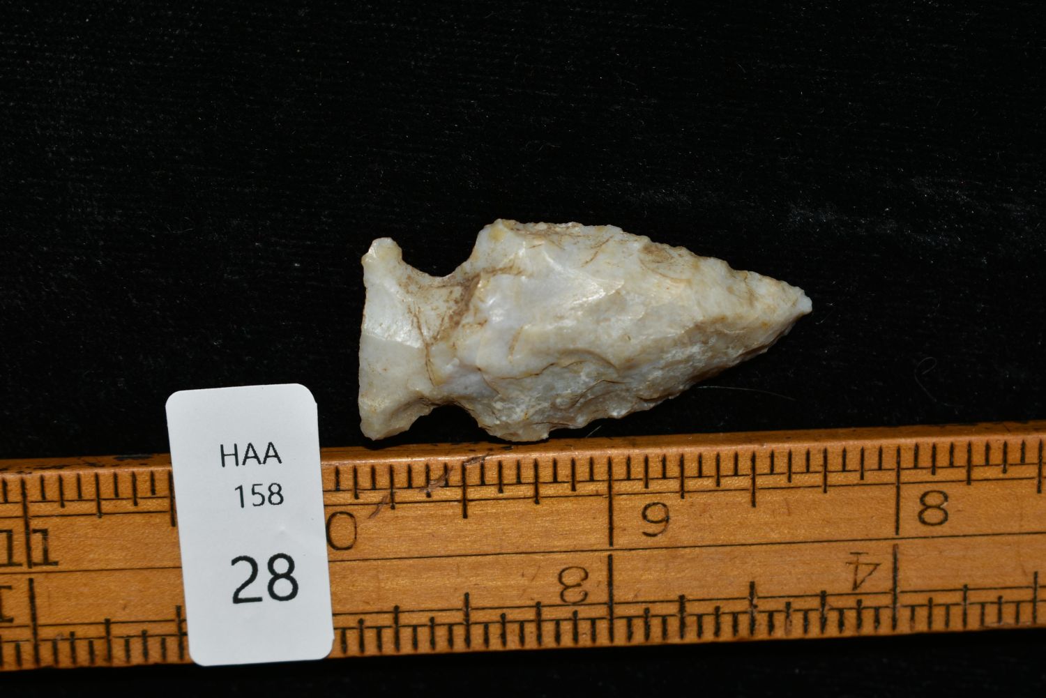 1 1/2" Dart Point, This collection contains the personally found relics of Steve Koch, Winchester Illinois. Steve hunted relics his entire life with family and friends. He mainly hunted in the Scott Co., Illinois area, and the majority of his finds came from the Illinois River Valley. This is the first 300+- lots of this collection to be auction.