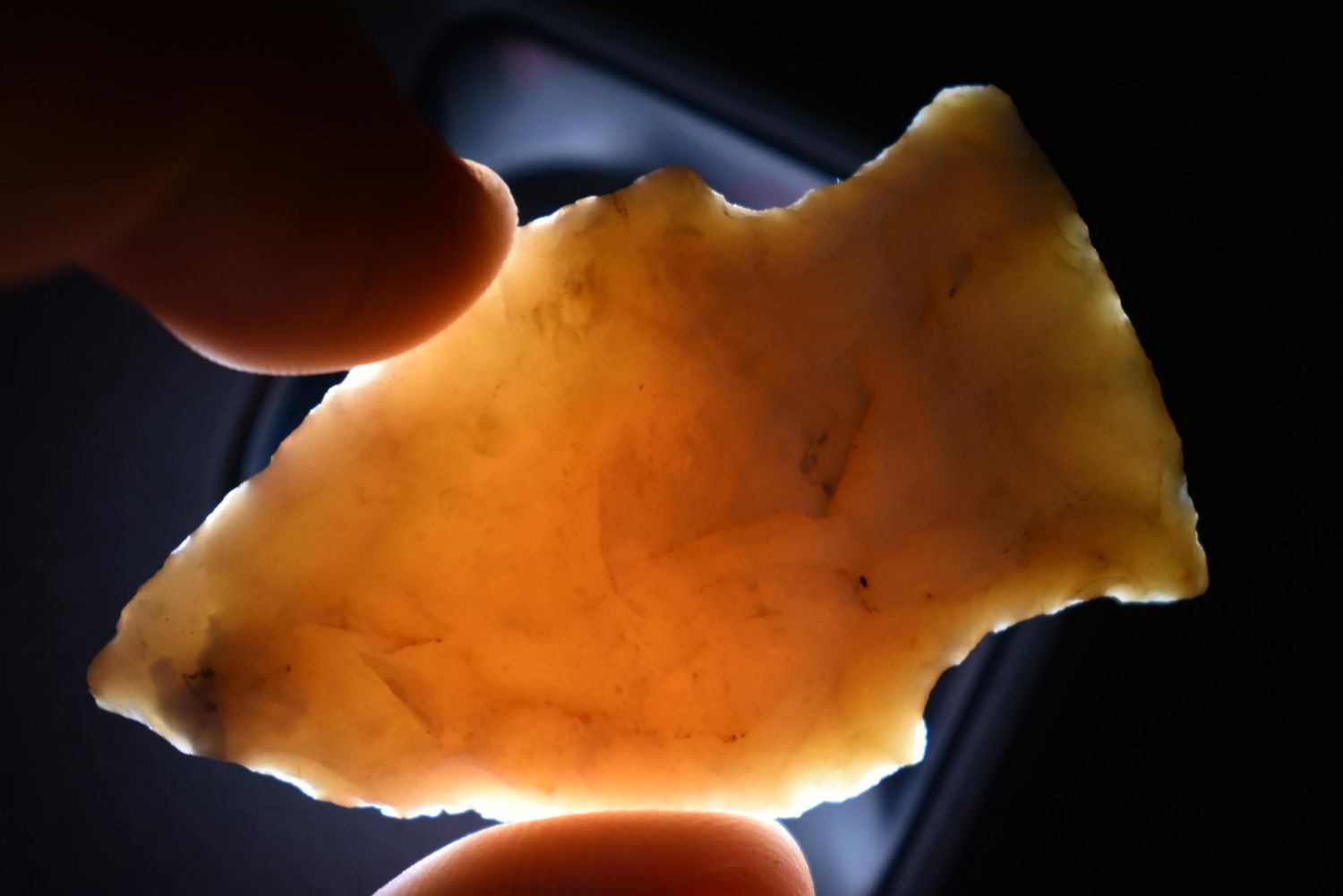 1 7/8" Translucent Snyders, This collection contains the personally found relics of Steve Koch, Winchester Illinois. Steve hunted relics his entire life with family and friends. He mainly hunted in the Scott Co., Illinois area, and the majority of his finds came from the Illinois River Valley. This is the first 300+- lots of this collection to be auction.