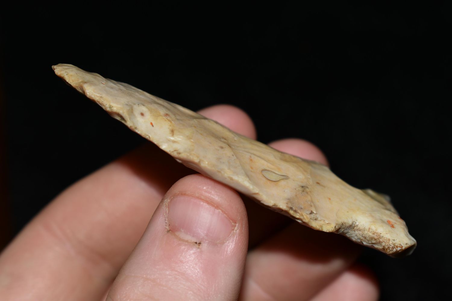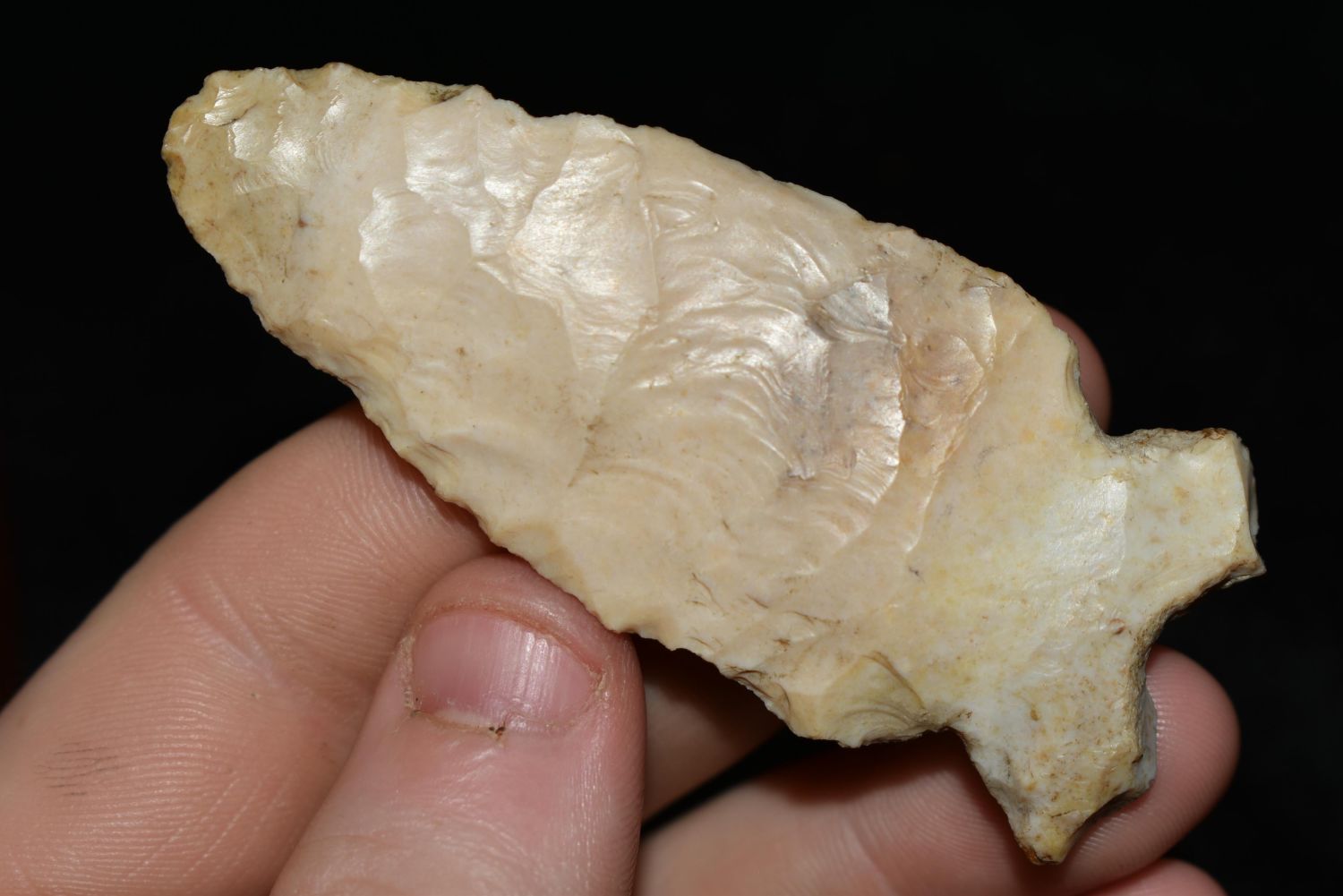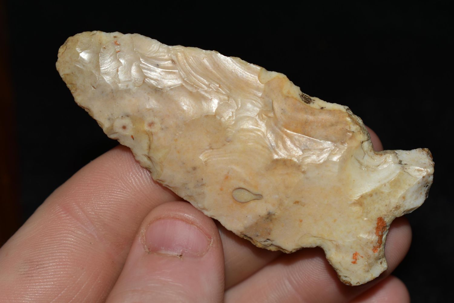 2 7/8" Re Based Point, This collection contains the personally found relics of Steve Koch, Winchester Illinois. Steve hunted relics his entire life with family and friends. He mainly hunted in the Scott Co., Illinois area, and the majority of his finds came from the Illinois River Valley. This is the first 300+- lots of this collection to be auction.
