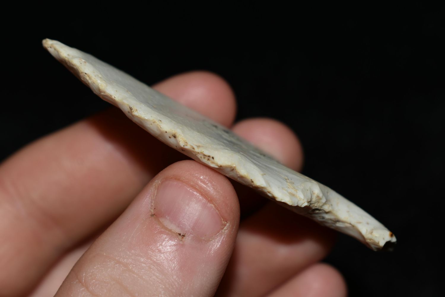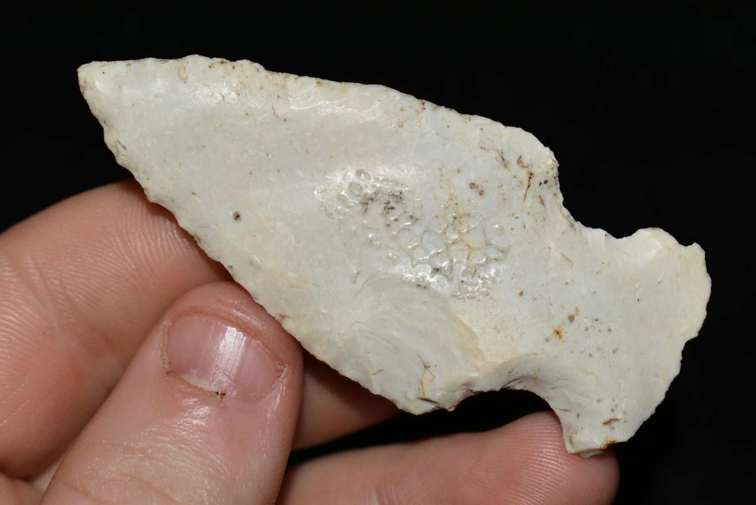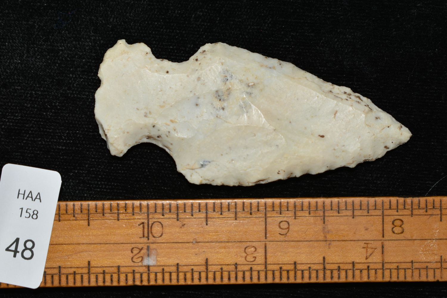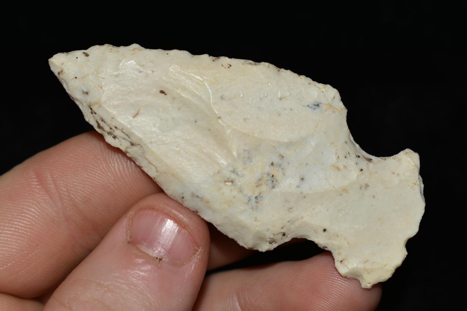 2 3/4" Gibson made from a flake, This collection contains the personally found relics of Steve Koch, Winchester Illinois. Steve hunted relics his entire life with family and friends. He mainly hunted in the Scott Co., Illinois area, and the majority of his finds came from the Illinois River Valley. This is the first 300+- lots of this collection to be auction.