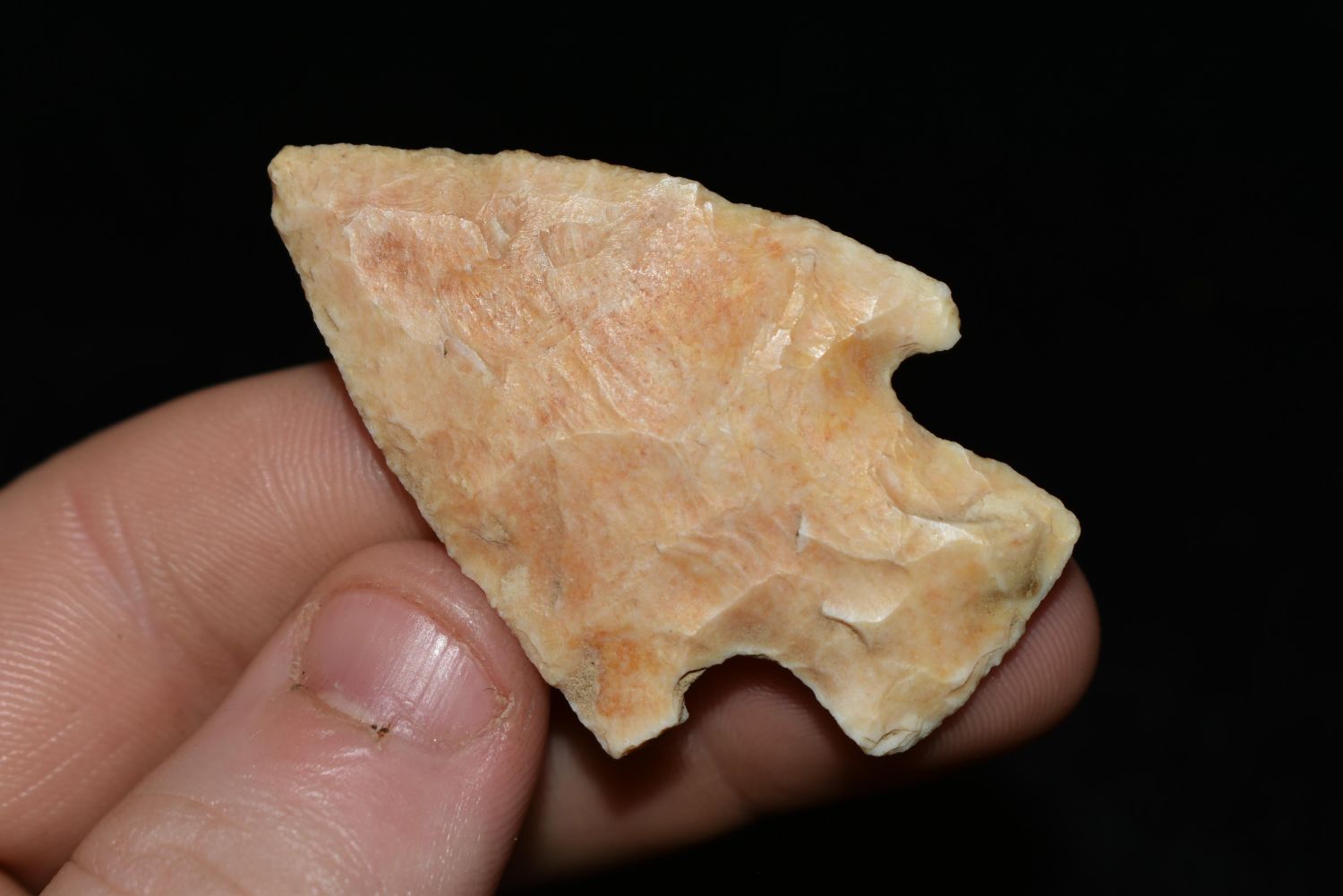 2" Heavy Creek Stained Apple Creek, This collection contains the personally found relics of Steve Koch, Winchester Illinois. Steve hunted relics his entire life with family and friends. He mainly hunted in the Scott Co., Illinois area, and the majority of his finds came from the Illinois River Valley. This is the first 300+- lots of this collection to be auction.