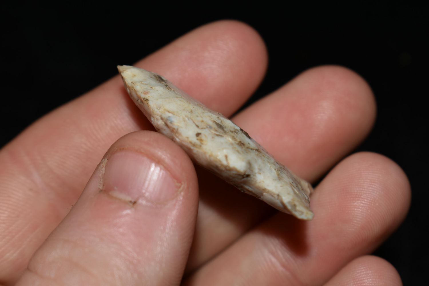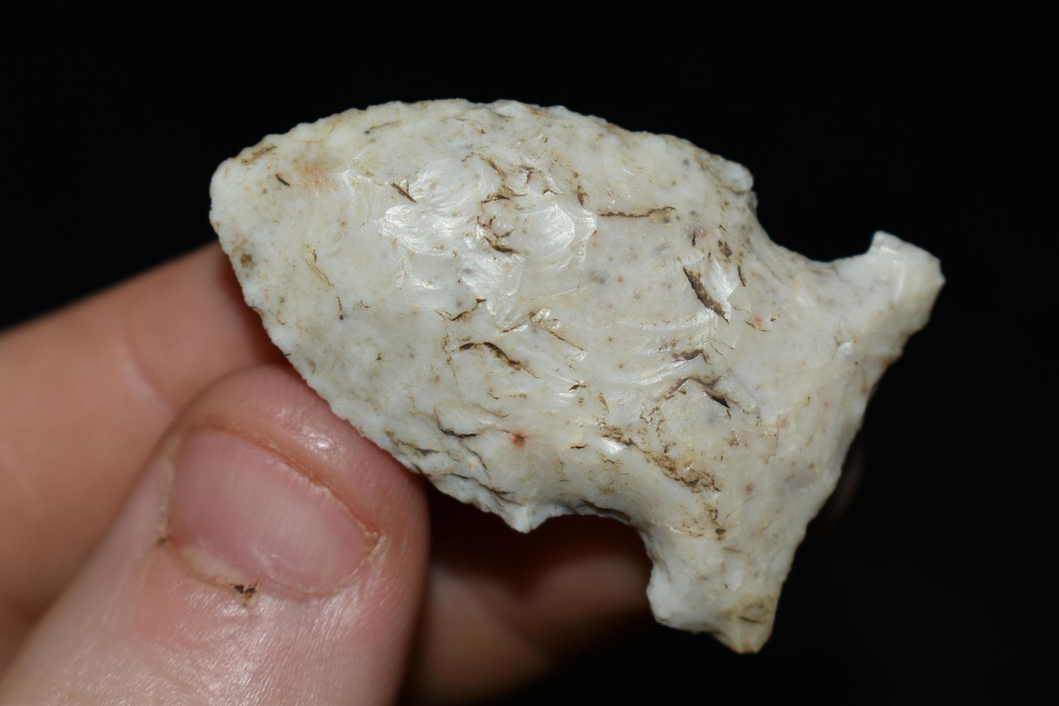 1 1/2" Super Side Notch, This collection contains the personally found relics of Steve Koch, Winchester Illinois. Steve hunted relics his entire life with family and friends. He mainly hunted in the Scott Co., Illinois area, and the majority of his finds came from the Illinois River Valley. This is the first 300+- lots of this collection to be auction.