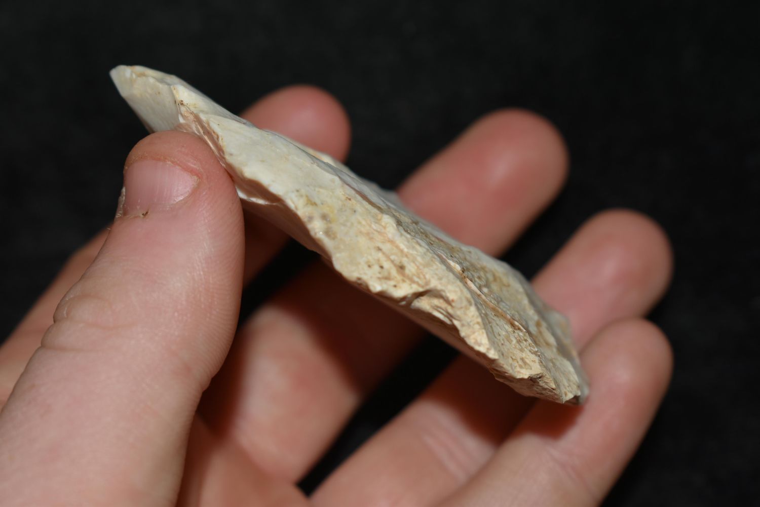 2 7/8" Hopewell North Blade, This collection contains the personally found relics of Steve Koch, Winchester Illinois. Steve hunted relics his entire life with family and friends. He mainly hunted in the Scott Co., Illinois area, and the majority of his finds came from the Illinois River Valley. This is the first 300+- lots of this collection to be auction.