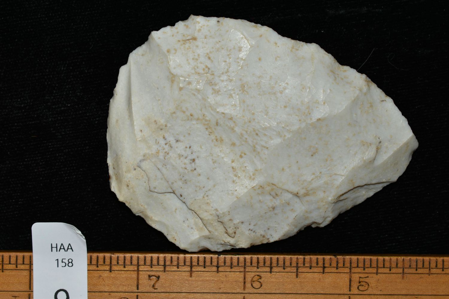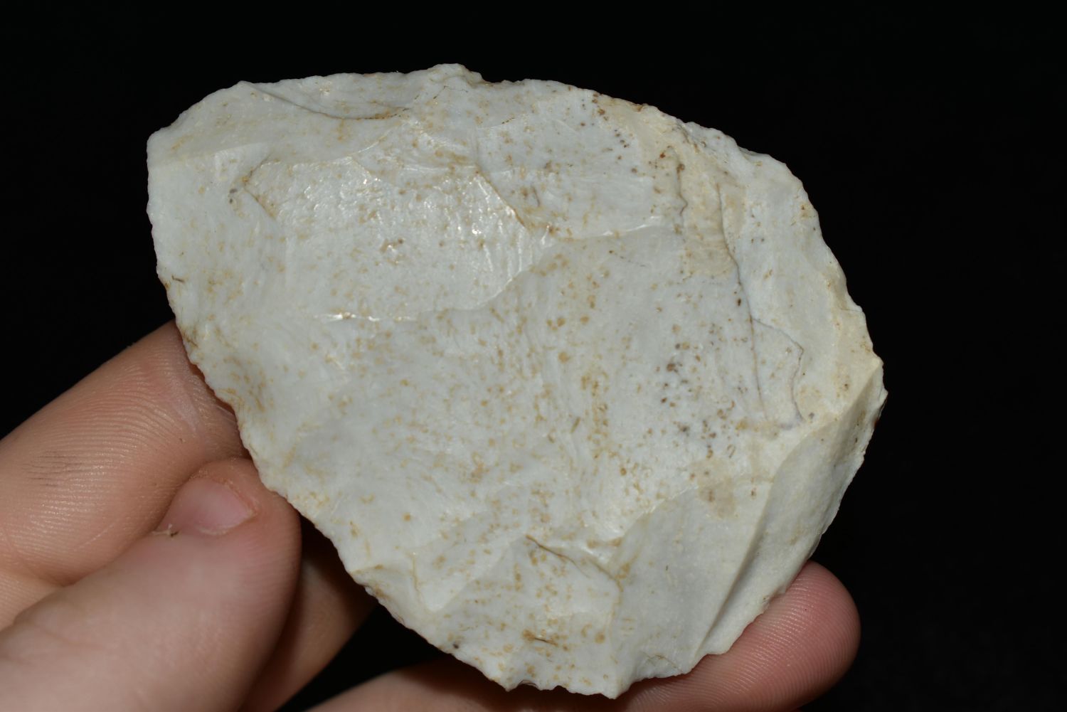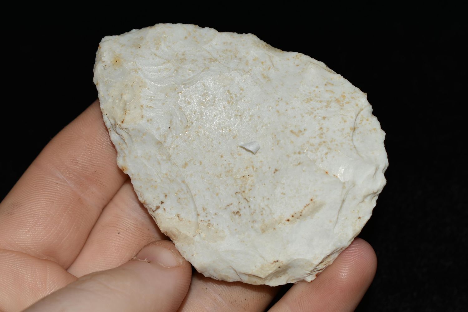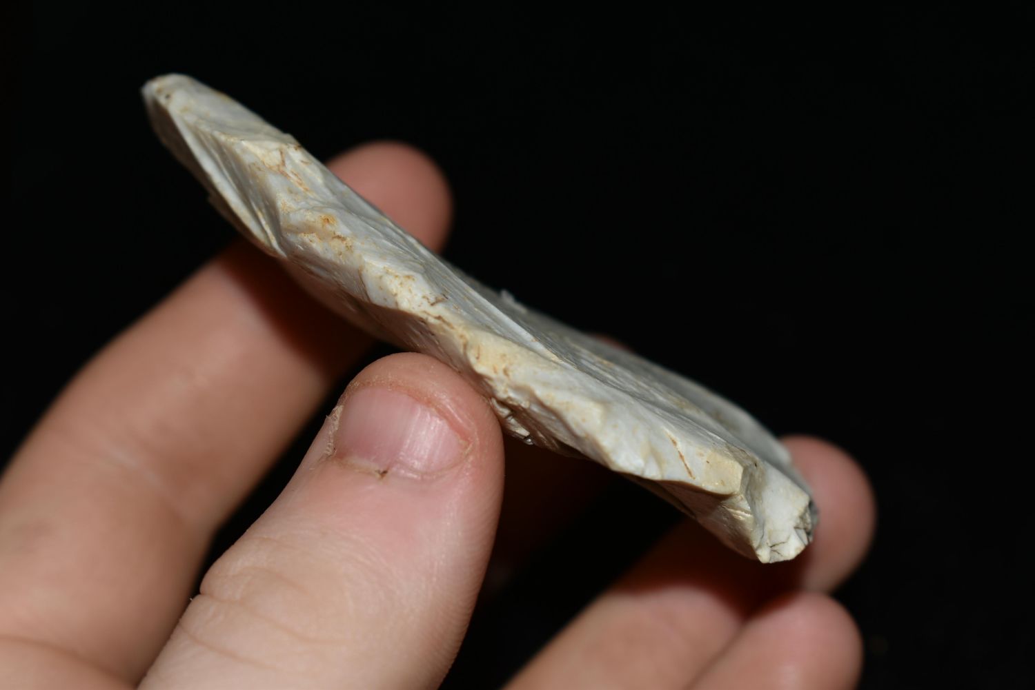 2 7/8" Early Archaic Knife, This collection contains the personally found relics of Steve Koch, Winchester Illinois. Steve hunted relics his entire life with family and friends. He mainly hunted in the Scott Co., Illinois area, and the majority of his finds came from the Illinois River Valley. This is the first 300+- lots of this collection to be auction.