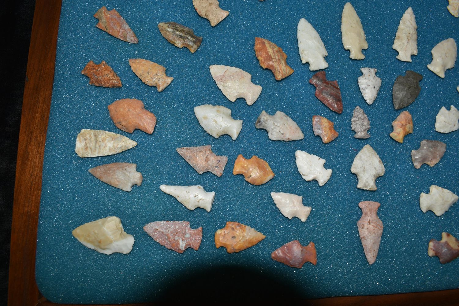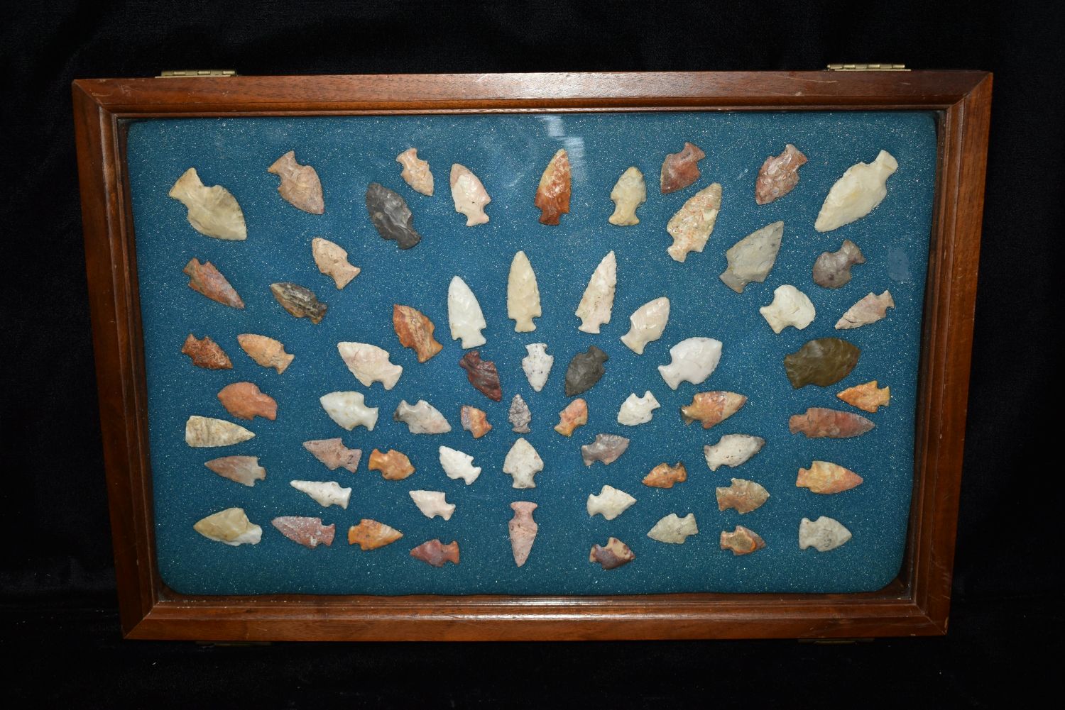Frame Containing 64 Tablerocks, All found by Steve Koch, Many with beautiful river btoom stain, This collection contains the personally found relics of Steve Koch, Winchester Illinois. Steve hunted relics his entire life with family and friends. He mainly hunted in the Scott Co., Illinois area, and the majority of his finds came from the Illinois River Valley. This is the first 300+- lots of this collection to be auction.