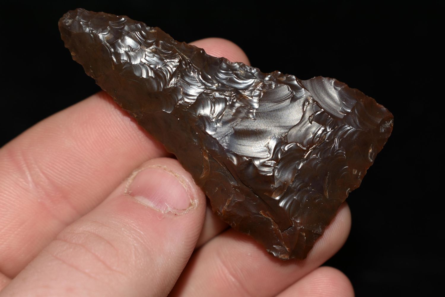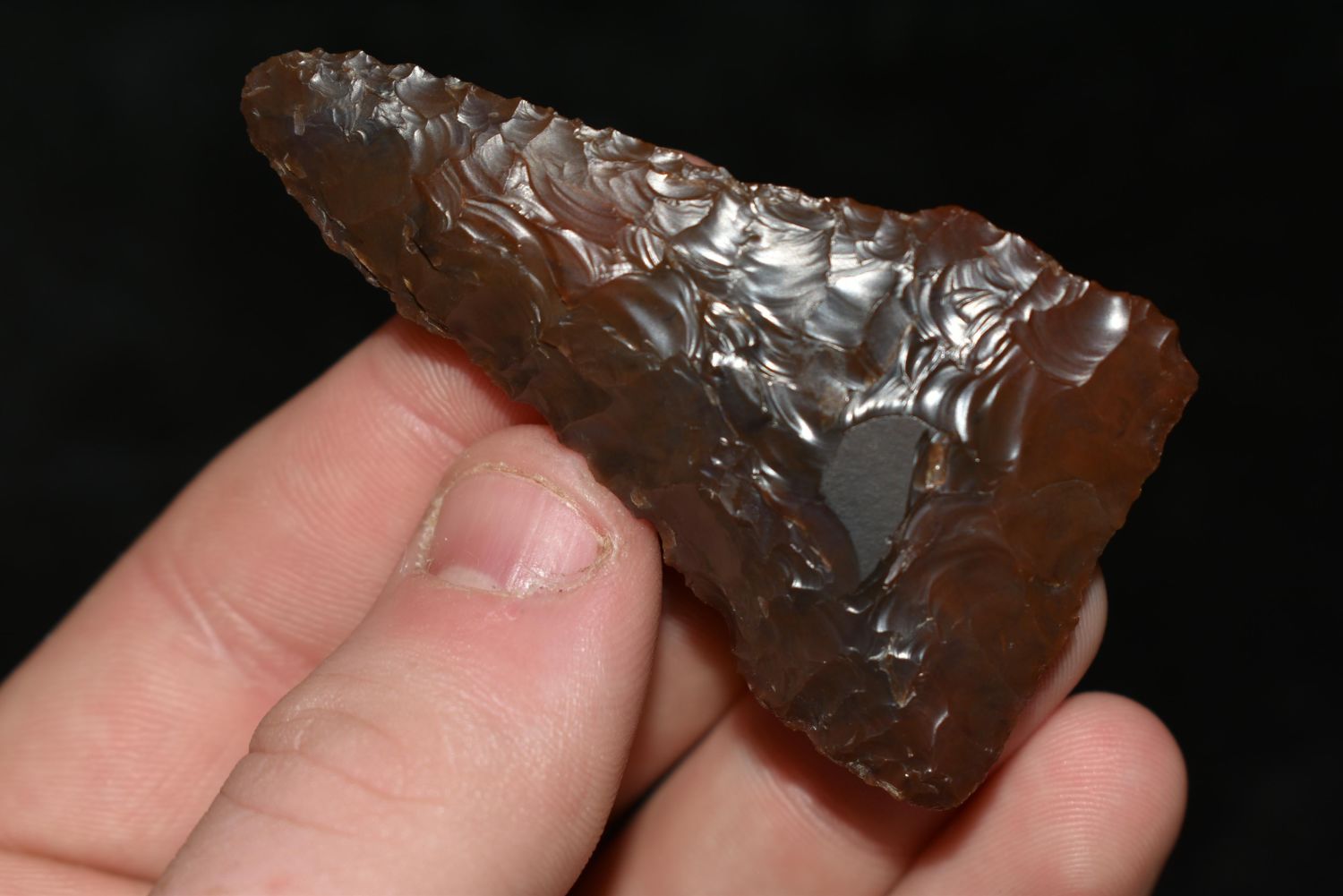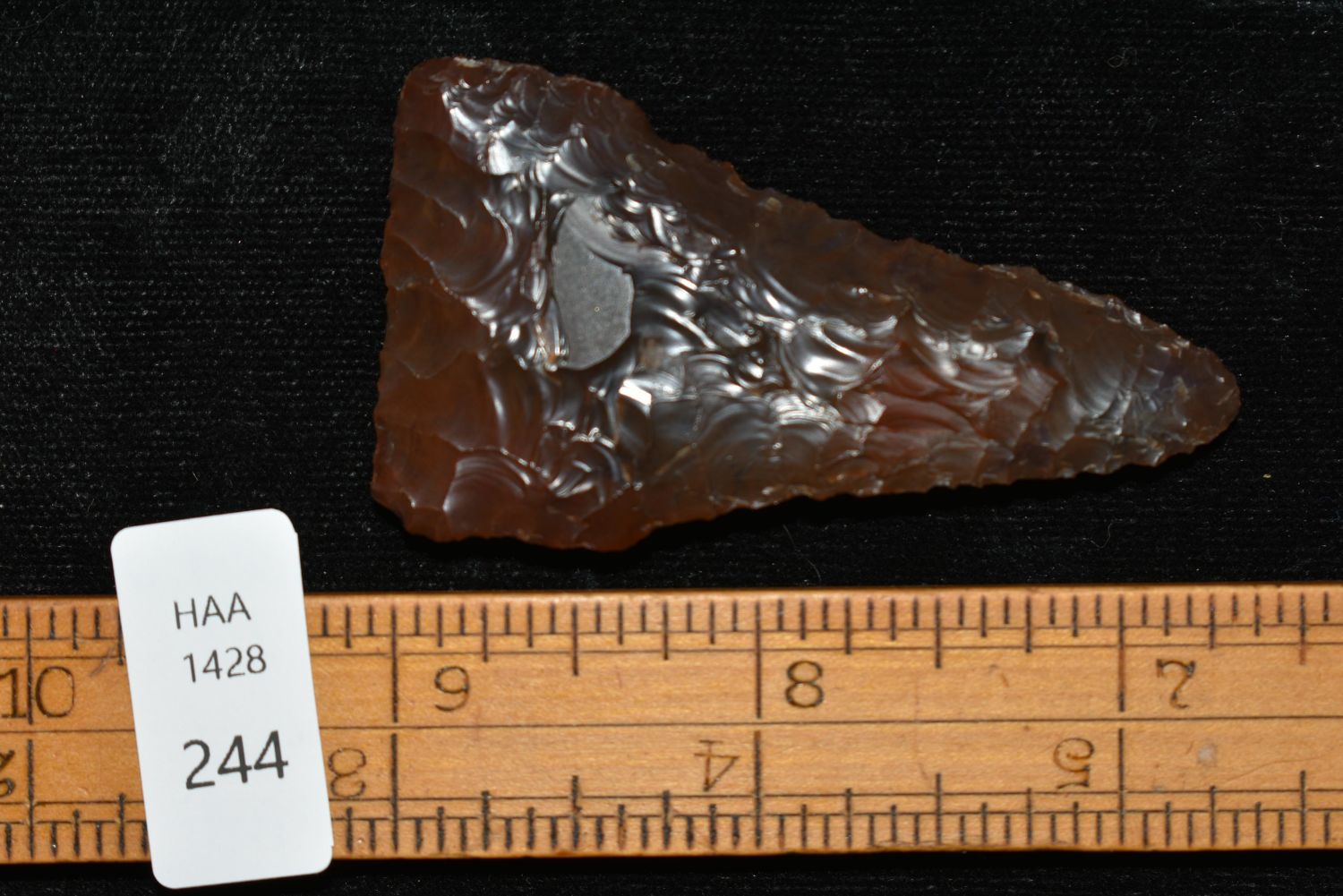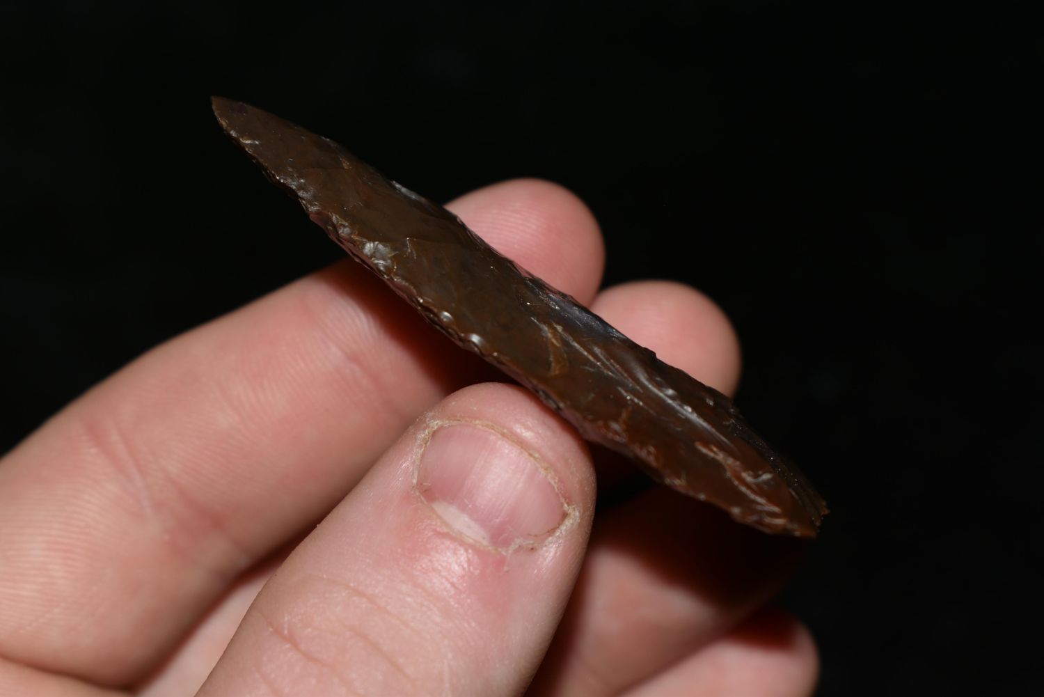 2 3/8" Archaic Knife This collection contains Wonderful examples of Columbia River Valley Arrowheads and Darts from the Fred Van Ronk Collection. The location of these artifacts range from the about Dalles, Oregon to the area just North of Vantage, WA Authentic Native American Arrowhead